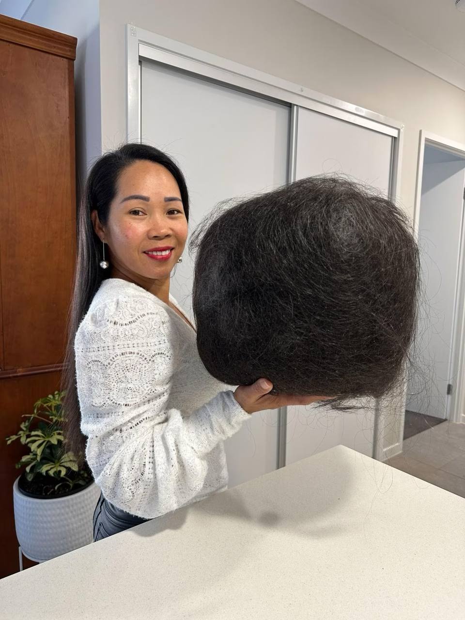 ဩစတြေးလျနိုင်ငံက အသက် ၄၃ နှစ်အရွယ် Divina Burnell လို့ အမည်ရတဲ့ အမျိုးသမီးဟာ ၂၃ နှစ်ကြာ သူမရဲ့ ဦးခေါင်းက ကျွတ်တဲ့ဆံပင်တွေကို စုဆောင်းခဲ့တာဟာ အခုဆိုရင်တော့ လူဦးခေါင်းထက် အတော်လေးကြီးတဲ့ ဆံပင်လုံးကြီး ဖြစ်လာခဲ့ပြီး ဆံပင်လုံးနဲ့ ဗီဒီယိုဖိုင်ကို သူမရဲ့သမီးဖြစ်သူက အင်တာနက်ပေါ် တင်ခဲ့ရာမှာတော့ ကြည့်ရှုသူတွေဆီကနေ တုံ့ပြန်မှုများစွာရရှိခဲ့ပါတယ်။