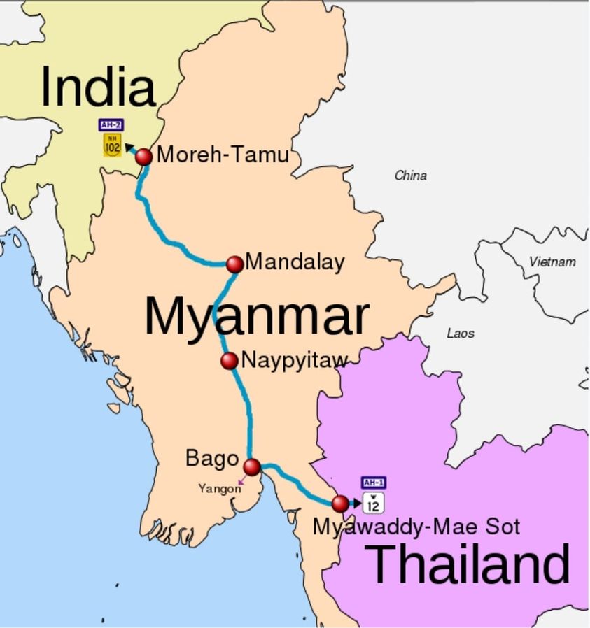 အိန္ဒိယ-မြန်မာ- ထိုင်းနိုင်ငံတို့ ချိတ်ဆက်မည့် အဝေးပြေးလမ်းမ တည်ဆောက်ရေး စီမံကိန်းသည် လက်ရှိအချိန်တွင် ၇၀ ရာခိုင်နှုန်းနီးပါးပြီးဆုံးနေပြီဖြစ်သော်လည်းမြန်မာနိုင်ငံရေးအခြေအနေများကြောင့် အဆိုပါစီမံကိန်းတည်ဆောက်ရန် နှောင့်နေးမှုများရှိခဲ့သည်။ အဆိုပါသုံးနိုင်ငံချိတ်ဆက်မည့် အဝေးပြေးလမ်းစီမံကိန်းသည်