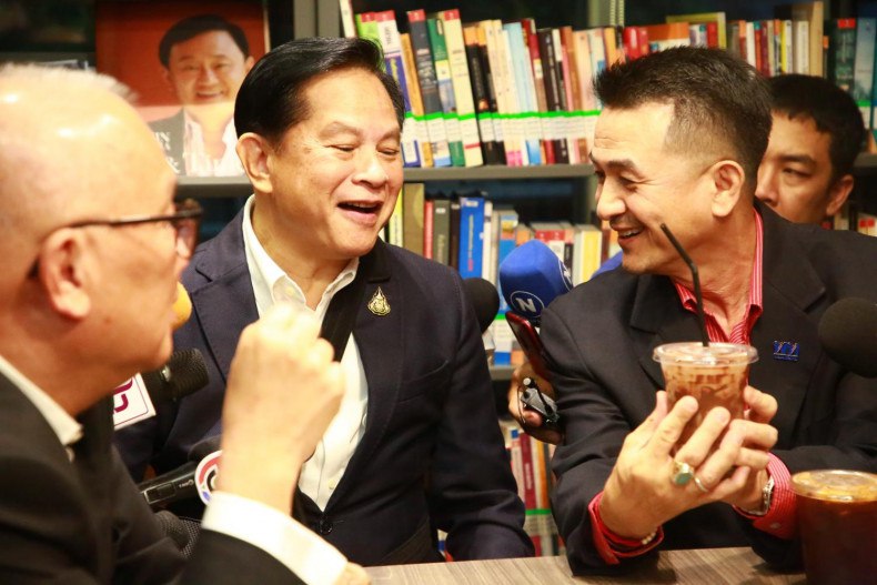 ဖျူထိုင်းပါတီ ခေါင်းဆောင် ချိုလ်နန် ဆရီကော နဲ့ United Thai Party အမှုဆောင်ချုပ် ပီရာပန် ဆာရီရာသာဗီဘာဂါ(လယ်) တို့ ဇူလိုင် ၂၂ ရက် တွေ့ဆုံဆွေးနွေးနေသည်ကို တွေ့ရစဉ်။