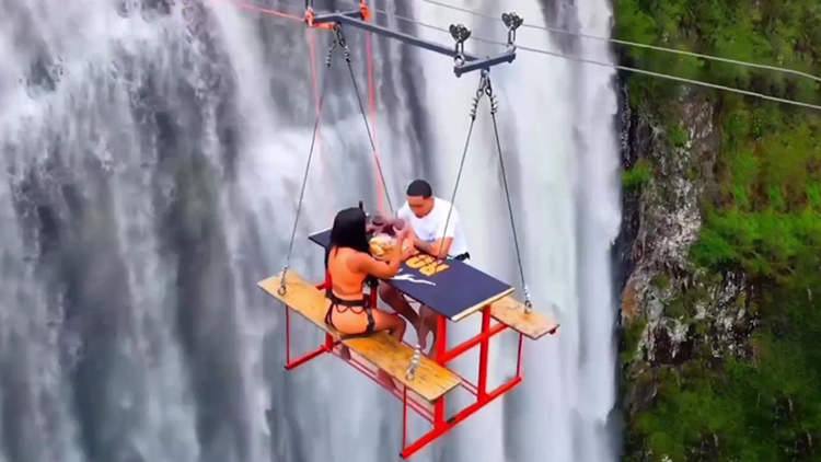 ဘရာဇီးလ်နိုင်ငံ၊ Rio Grande do Sul ပြည်နယ်က လှပလွန်းတဲ့ Cascata da Sepultura ရေတံခွန်ဘေး မြေပြင်အထက် ၂၉၅ ပေမှာ ကြိုးနဲ့တွဲလောင်းချထားတဲ့ သစ်သားစားပွဲတစ်ခုပေါ် ပျော်ပွဲစားထွက်တဲ့ အရသာခံစားပြီး ရင်ခုန်စိတ်လှုပ်ရှားလိုသူတွေအတွက် အမေရိကန်ဒေါ်လာ ၄၅၀ (မြန်မာငွေနဲ့ဆို ၁၄ သိန်းနီးပါး) ကုန်ကျမယ့် အစီအစဉ်ကို ဘရာဇီးကုမ္ပဏီ Rota Aventura ပေးဆောင်နေပြီပဲ ဖြစ်ပါတယ်။