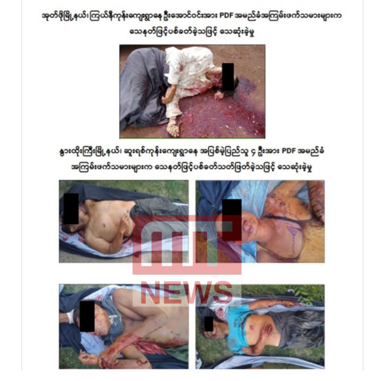 ရန်ကုန်၊ အုတ်ဖို၊ နွားထိုးကြီးနှင့် မြဝတီမြို့နယ်တို့တွင် လေးလောင်းပြိုင်သတ်ဖြတ်ခံရမှုအပါအဝင် ပြည်သူ ၇ ဦးကို PDF များက ပစ်ခတ်သတ်ဖြတ်မှုဖြစ်ပွားခဲ့သည်ဟု မြန်မာနိုင်ငံရဲတပ်ဖွဲ့မှ သိရသည်။