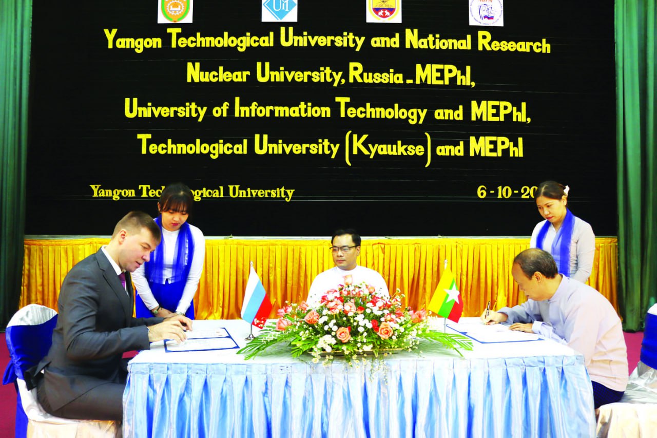 အဏုမြူစွမ်းအင်၊ နျူကလီးယားနည်းပညာ ဘာသာရပ်များ အပါအဝင် သိပ္ပံနည်းပညာနှင့် အင်ဂျင်နီယာ ဘာသာရပ်များတွင် ပူးပေါင်းဆောင်ရွက်ကာ နိုင်ငံတော်အကျိုးပြု စွမ်းအားစုများအဖြစ် အရည်အသွေးပြည့်မီသော နည်းပညာရှင်များကို မွေးထုတ်ရေးနှင့် ပြည်သူ့အကျိုးပြု သုတေသနများ ဖွံ့ဖြိုးတိုးတက်ရေးတို့ကို မြှင့်တင်ဆောင်ရွက်နိုင်ရန် သိပ္ပံနှင့်နည်းပညာဝန်ကြီး ဌာနမှ အဓိကရည်ရွယ်ကာ တက္ကသိုလ်သုံးခုနှင့် ရုရှားဖက်ဒရေးရှင်းနိုင်ငံ National Research Nuclear University (Moscow Engineering Physics Institute-MEPhI) တက္ကသိုလ်တို့အကြား နားလည်မှုစာချွန်လွှာများ လက်မှတ်ရေးထိုးလိုက်ကြောင်း သိရသည်။
