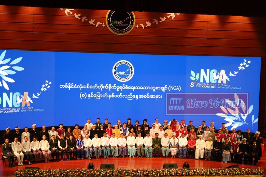 တစ်နိုင်ငံလုံး အပစ်အခတ်တိုက်ခိုက်မှု ရပ်စဲရေးသဘောတူစာချုပ်(NCA)၏ ငြိမ်းချမ်းရေးအသီးအပွင့်များ မရရှိအောင် တိုင်းပြည်သစ္စာဖောက်အချို့နှင့် ပြည်ပနိုင်ငံအချို့က လက်မှတ်မထိုးရန် သွေးထိုးလှုံ့ဆော်မှုများ ဆောင်ရွက်နေကြောင်း ယနေ့ နေပြည်တော်ရှိ MICC-2 တွင် ပြုလုပ်သည့် NCA (၈) နှစ်မြောက် နှစ်ပတ်အလည်အခမ်းအနားတွင် နိုင်ငံတော်စီမံအုပ်ချုပ်ရေးကောင်စီ (SAC)ဥက္ကဋ္ဌ ဗိုလ်ချုပ်မှူးကြီးမင်းအောင်လှိုင်က ပြောကြားသည်။