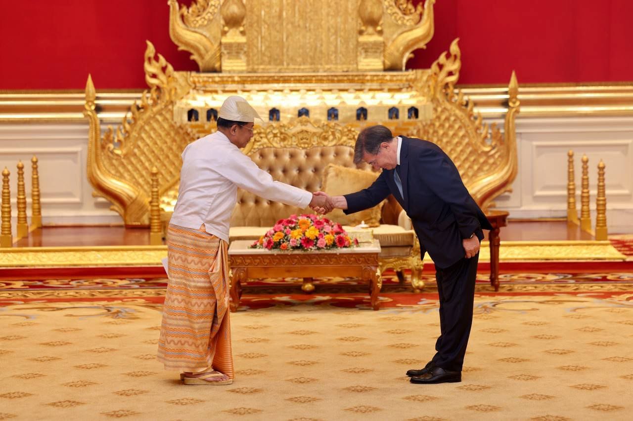 နိုင်ငံတော်စီမံအုပ်ချုပ်ရေးကောင်စီဥက္ကဋ္ဌ နိုင်ငံတော်ဝန်ကြီးချုပ် ဗိုလ်ချုပ်မှူးကြီး မင်းအောင်လှိုင်ထံ မြန်မာနိုင်ငံဆိုင်ရာ ရုရှားဖက်ဒရေးရှင်းနိုင်ငံသံအမတ်ကြီးအဖြစ် ခန့်အပ်ရန် သဘောတူညီပြီးဖြစ်သော သံအမတ်ကြီး H.E. Mr. Iskander Azizov သည် ယမန်နေ့နံနက် ၁၀ နာရီတွင် နေပြည်တော်ရှိ နိုင်ငံတော်စီမံအုပ်ချုပ်ရေးကောင်စီဥက္ကဋ္ဌရုံး၊ သံတမန်ဆောင်ဧည့်ခန်းမ၌ ၎င်း၏သံအမတ်ခန့်အပ်လွှာကိုပေးအပ်သည်။