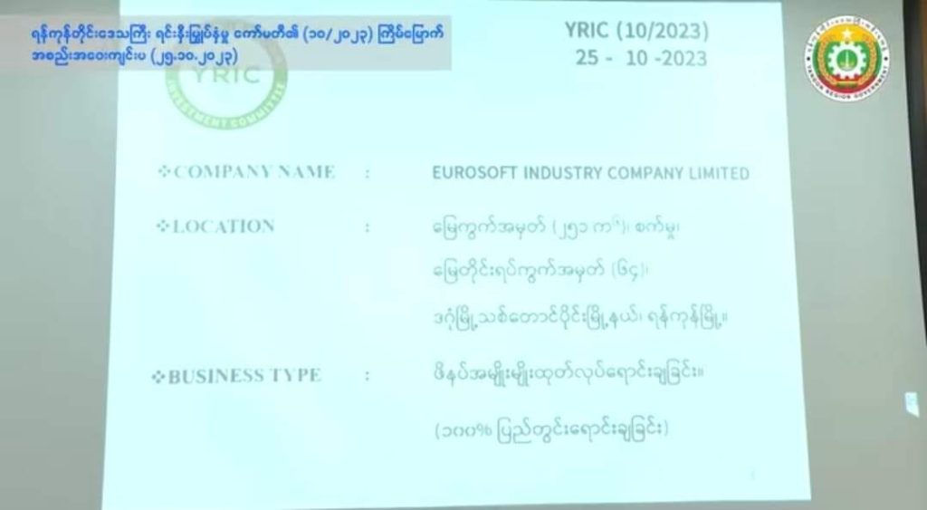 ရန်ကုန်တိုင်းတွင် အမေရိကန်ဒေါ်လာ ၆ သန်းကျော်နှင့် ကျပ်သန်း ၄၅၀၀ ကျော်မြှုပ်နှံမည့် ပြည်တွင်းပြည်ပ လုပ်ငန်း ၈ ခုကို ယနေ့ကျင်းပသည့် ရန်ကုန်တိုင်းဒေသကြီး ရင်းနှီးမြှုပ်နှံမှုကော်မတီ၏ (၁၀/၂၀၂၃) ကြိမ်မြောက်အစည်းအဝေးတွင် ခွင့်ပြုပေးခဲ့သည်။