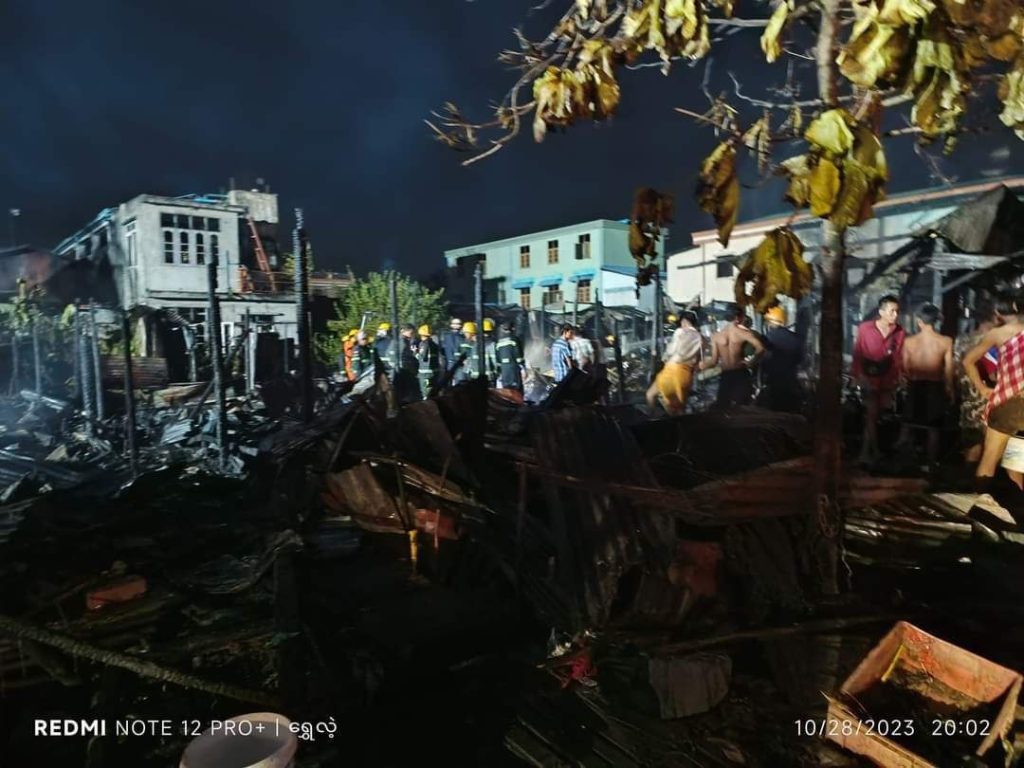 ထိုဖြစ်စဥ်မှာ အောက်တိုဘာ ၂၈ ရက် ည ၇ နာရီ ၈ မိနစ်ခန့်က ပိုင်ရှင်ဦးတင်ဝေ အငှားချထားသော အိမ် ၁၆ လုံးအနက် အိမ်တစ်လုံးမှ မီးစတင်လောင်ကျွမ်းခဲ့ပြီး သွပ်မိုး၊ သွပ်ကာ၊ ပျဥ်ခင်း နေအိမ် ၂၉ လုံး မီးလောင်ဆုံးရှုံးခဲ့ခြင်းဖြစ်သည်။ မီးလောင်မှုမှာ မိနစ် ၄၀ ခန့် လောင်ကျွမ်းခဲ့ပြီး မီးသတ်တပ်ဖွဲ့ဝင် ၁၃၀ ကျော်ဖြင့် ငြှိမ်းသတ်ခဲ့ကြောင်း သိရသည်။