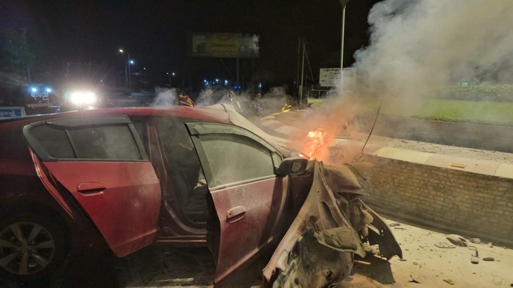 မော်လမြိုင်တွင် သန်းခေါင်ယံအချိန်က စျေးကြိုအဝိုင်းကို အိမ်စီးကားတစ်စီး တိုက်မိမှုဖြစ်ပွားရာ ကားမီးလောင်ခဲ့ပြီး ယာဉ် မောင်းသေဆုံးခဲ့ကြောင်း ဘိုဘိုဝင်း Rescue အရေးပေါ်ကယ်ဆယ်ရေးအဖွဲ့ထံက သိရသည်။
