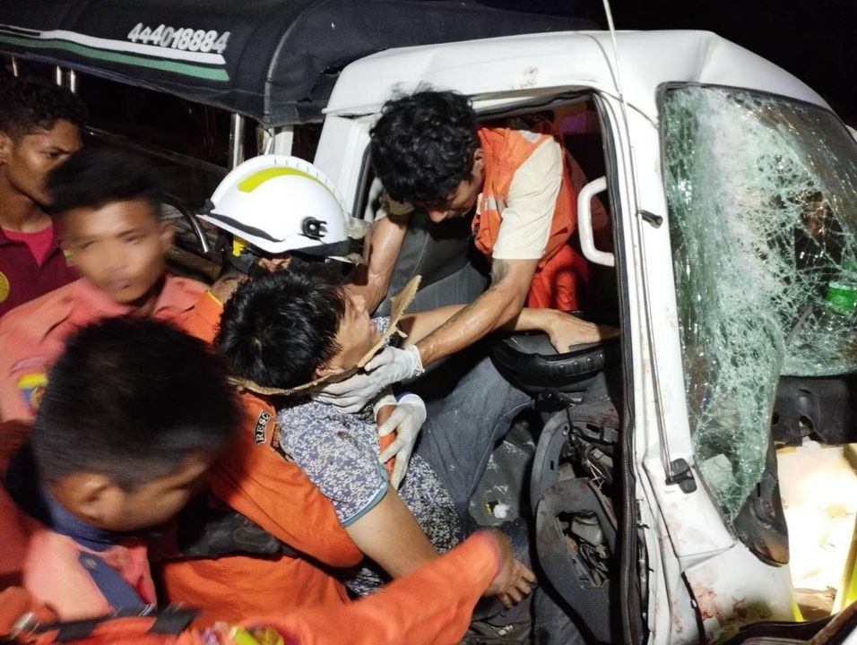 Nissan အဖြူရောင်ယာဥ်မှာ သာကေတဘက်မှ တောင်ဒဂုံဘက်သို့ မောင်းနှင်လာစဥ် Gas ထည့်ရန် တန်းစီနေသော YBS- ၆ ခရီးသည်တင်ယာဥ်ကို ဝင်တိုက်မိခဲ့ခြင်းဖြစ်ပြီး Nissan အဖြူရောင်ယာဥ်မောင်းမှာ ကားစတီယာရင်တိုင်နှင့် ထိုင်ခုံကြားညပ်နေသဖြင့် ဒဂုံမြို့သစ် (တောင်ပိုင်း)မြို့နယ်မီးသတ်စခန်းမှ တပ်ဖွဲ့ဝင်များက ဝိုင်းဝန်း ကယ်ထုတ်ခဲ့ရကြောင်း သိရှိရသည်။