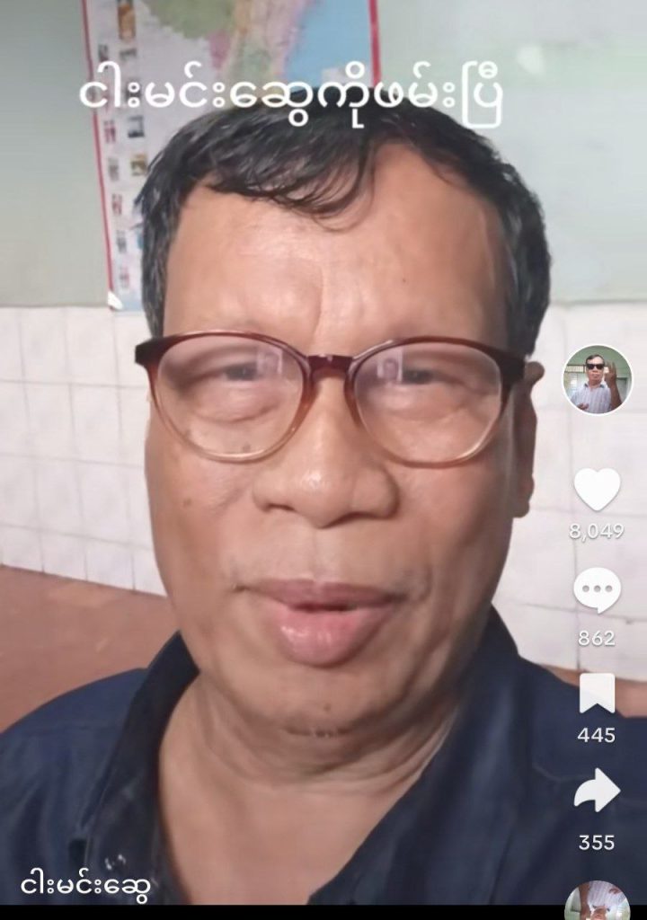 ပုံစာ။ ကျိုက်ထိုမြို့မရဲစခန်းက လာရောက်ဖမ်းဆီးကြောင်း အသိပေးထားသည့် ငါးမင်းဆွေ၏ Tiktok အသိပေးရုပ်ပုံ။