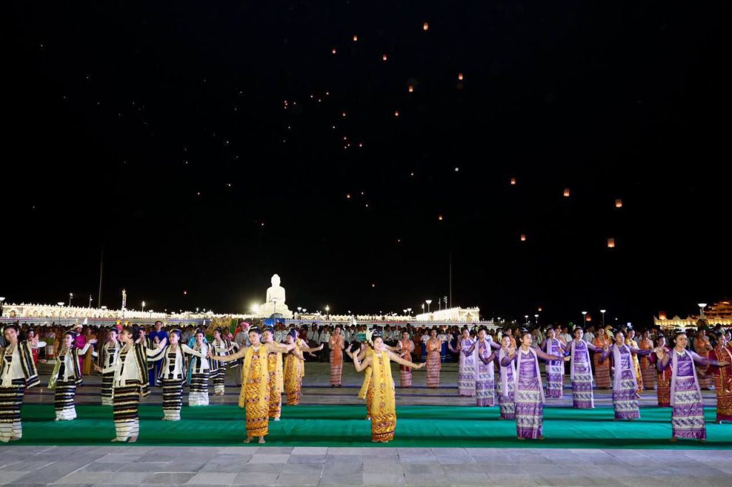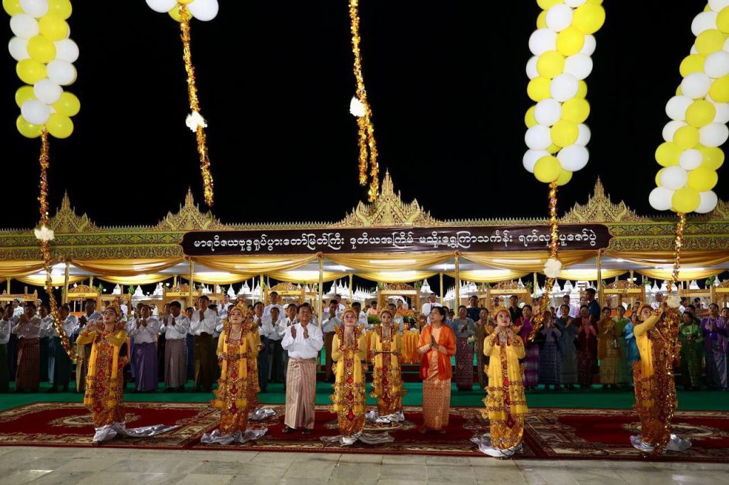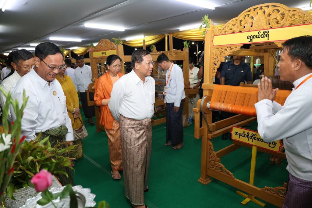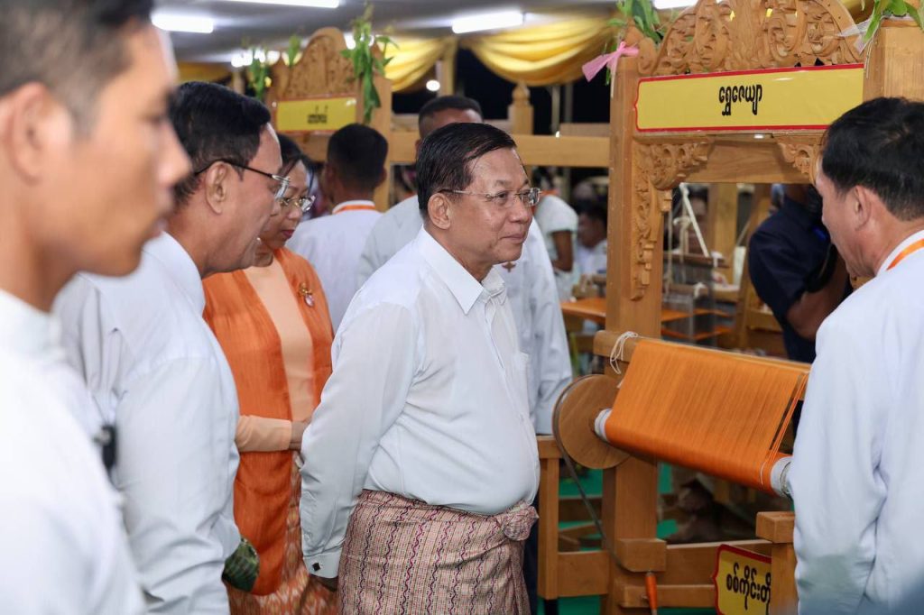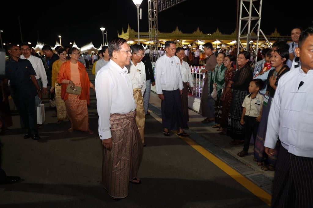 ထို့နောက် SAC ဥက္ကဋ္ဌနှင့် ဇနီး၊ ဧည့်ပရိသတ်များသည် နေပြည်တော်ကောင်စီနယ်မြေအပါအဝင် တိုင်းဒေသကြီးနှင့် ပြည်နယ်အသီးသီး ယက္ကန်းစင်တော် ၁၅ ခုမှ ယက္ကန်းအဖွဲ့များ၏ မသိုးရွှေကြာသင်္ကန်း ရက်လုပ်နေမှုများကို ယက္ကန်းစင်တော် တစ်ခုချင်းစီအလိုက် လှည့်လည်ကြည့်ရှုအားပေးခဲ့ပြီးနောက် စိန်နားပန်မီးပုံးပျံများနှင့် ညမီးကျည်(ညမီးကြီး) မီးပုံပျံများလွှတ်တင်မှုများကို မာရဝိဇယဗုဒ္ဓရုပ်ပွားတော်မြတ်ကြီး တန်ဆောင်တိုင်မီးထွန်းပွဲတော်သို့ လာရောက်ကြသည့် ဘုရားဖူးလာရဟန်းရှင်လူပြည်သူများနှင့်အတူ ကြည့်ရှုအားပေးကြသည်။