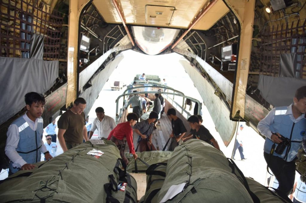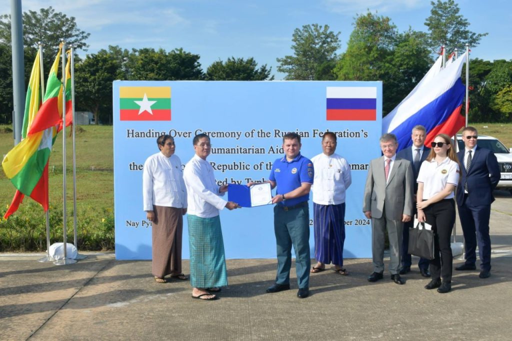 ရာဂီမုန်တိုင်းနှင့် ဆက်စပ်ဖြစ်ပွားသော ရေကြီးရေလျှံမှုများကြောင့် ဘေးသင့်ဒေသများ ပြန်လည်ထူထောင်ရေးအတွက် ရုရှားဖက်ဒရေးရှင်းနိုင်ငံကိုယ်စား အရပ်ဘက်ကာကွယ်ရေး၊ အရေးပေါ်အခြေအနေနှင့် သဘာဝဘေးအန္တရာယ်သက်ရောက်မှုများ တိုက်ဖျက်ရေးဆိုင်ရာဝန်ကြီးဌာန၊ စက်မှုနှင့်ကုန်သွယ်ရေးဝန်ကြီးဌာန၊ ရုရှားနိုင်ငံနျူကလီးယားစွမ်းအင်ကော်ပိုရေးရှင်း (Rosatom) နှင့် Aquarius ကုမ္ပဏီများအုပ်စုတို့က လူသားချင်းစာနာထောက်ထားမှုအကူအညီပစ္စည်းများကို ရုရှားဖက်ဒရေးရှင်းနိုင်ငံမှ သယ်ယူပို့ဆောင်ရေးလေယာဉ်ဖြင့် လာရောက်ပေးပို့ရာ နေပြည်တော်လေဆိပ်သို့ ယနေ့နံနက်ပိုင်းတွင် ရောက်ရှိခဲ့ပြီး လူသားချင်းစာနာထောက်ထားမှုအကူအညီပစ္စည်းများ လွှဲပြောင်းပေးအပ်ခြင်းအခမ်းအနားကို ကျင်းပခဲ့ရာ ပြည်ထောင်စုရာထူးဝန်အဖွဲ့ဥက္ကဋ္ဌ၊ မြန်မာ-ရုရှား ချစ်ကြည်ရေးအသင်းဥက္ကဋ္ဌ ဦးအောင်သော်၊ လူမှုဝန်ထမ်းကယ်ဆယ်ရေးနှင့် ပြန်လည်နေရာချထားရေးဝန်ကြီးဌာန၊ ဒုတိယဝန်ကြီး ဦးစိုးကြည်၊ နိုင်ငံခြားရေးဝန်ကြီးဌာနနှင့် ဘေးအန္တရာယ်ဆိုင်ရာစီမံခန့်ခွဲမှုဦးစီးဌာနတို့မှ အဆင့်မြင့်အရာရှိကြီးများ၊ မြန်မာနိုင်ငံဆိုင်ရာ ရုရှားသံရုံးမှ တာဝန်ရှိသူများ တက်ရောက်ခဲ့ကြသည်။
