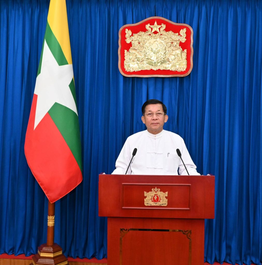 “ကျွန်တော်တို့ နိုင်ငံတော်စီမံအုပ်ချုပ်ရေးကောင်စီအနေဖြင့် တိုင်းပြည်သာယာဝပြောရေးနှင့် စားရေရိက္ခာဖူလုံရေး တို့ကို အမျိုးသားရေးလုပ်ငန်းစဉ်အဖြစ် ချမှတ်အကောင်အထည်ဖော်လျက်ရှိပါသည်။ တိုင်းပြည်သာယာ ဝပြောရေး ဆိုသည်မှာ ပြည်သူပြည်သားများအားလုံး တရားဥပဒေစိုးမိုးမှုအောက်တွင် အေးချမ်းသာယာစွာဖြင့် နေထိုင်နိုင်ခြင်း၊ ပညာသင်ကြားနိုင်ခြင်း၊ အလုပ်အကိုင်များ လုပ်ကိုင်ဆောင်ရွက်နိုင်ခြင်းတို့ဖြစ်ပါသည်။ တိုင်းရင်းသားဒေသများ၌ အကြမ်းဖက်သမားများနှင့် လက်နက်ကိုင်သောင်းကျန်းသူများ၏ လုပ်ဆောင်မှု များကြောင့် တည်ငြိမ် အေးချမ်းရေး၊ တရားဥပဒေစိုးမိုးရေးနှင့် ဒေသဖွံ့ဖြိုးတိုးတက်ရေးတို့ကို ထိခိုက်စေလျက် ရှိပါသည်။ ထို့အပြင် ကျောင်းသား၊ ကျောင်းသူများ၏ ပညာသင်ကြားမှုအခွင့်အလမ်းများနှင့် ဒေသခံပြည်သူများ၏ အလုပ်အကိုင် အခွင့်အလမ်းများ ဆုံးရှုံး၍ လူမှုစီးပွားဘဝများ ထိခိုက်နစ်နာစေလျက်ရှိပါသည်။ နိုင်ငံတော်စီမံအုပ်ချုပ်ရေး ကောင်စီအနေဖြင့် ရပ်ရွာအေးချမ်းသာယာရေး၊ တရားဥပဒေစိုးမိုးရေးနှင့် နိုင်ငံတော်တည်ဆောက်ရေး လုပ်ငန်းများကို တာဝန်ယူဆောင်ရွက်လျက်ရှိရာ တိုင်းရင်းသား ပြည်သူလူထုအားလုံးက တက်ညီလက်ညီ ပူးပေါင်းပါဝင်ကြရန် အဓိကလိုအပ်ပါသည်”ဟု ဗိုလ်ချုပ်မှူးကြီး မင်းအောင်လှိုင်က ထည့်သွင်း ပြောကြားသည်။