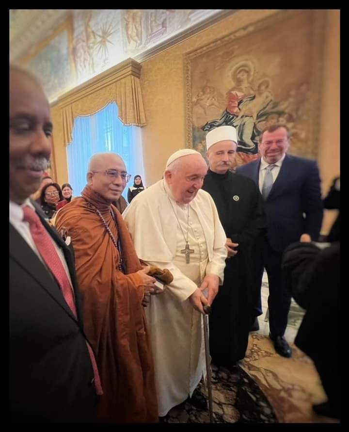 သြဇာတိက္ကမကြီးမားတဲ့ ပုပ်ရဟန်းမင်းကြီးဖရန့်စစ်နဲ့ငြိမ်းချမ်းရေးအကျိုးတော်ဆောင် IBEC ဆရာတော်တို့ ဗာတီကန်နန်းတော်မှာ တွေ့ဆုံခဲ့ပြီး ကမ္ဘာ့ငြိမ်းချမ်းရေးဆိုင်ရာကိစ္စရပ်တွေကို အထူးအလေးပေး ဆွေးနွေးခဲ့ကြတယ်လို့ သိရပါတယ်။