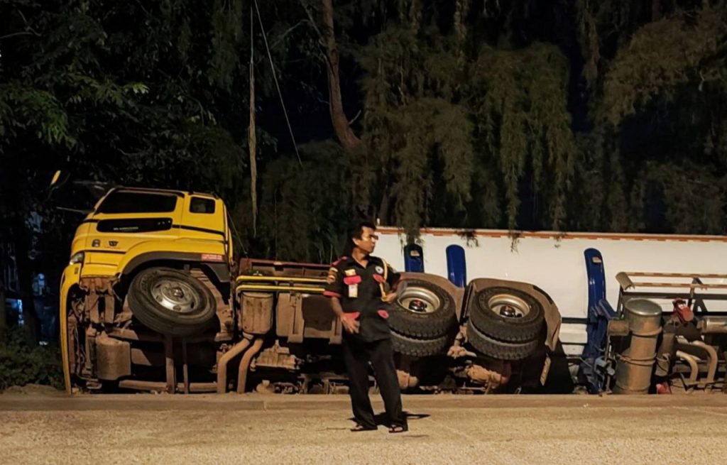 ရန်ကုန်တိုင်းဒေသကြီး၊ ဒဂုံမြို့သစ်ဆိပ်ကမ်းမြို့နယ်၊ (၉၄) ရပ်ကွက်၊ ရွှေလီလမ်းနှင့် ပုဏ္ဏမီလမ်းထောင့်တွင် နိုဝင်ဘာ ၂၉ ရက် ည ၉ နာရီ ၅၅ မိနစ်ခန့်က ပရီမီယံဒီဇယ် ဂါလံ ၈၈၀၀ တင်ဆောင်လာသော ဆီဘောက်ဆာယာဥ် တိမ်းမှောက်မှုဖြစ်ပွားခဲ့ကြောင်း သွားရောက်ကူညီခဲ့သူများထံမှ သိရသည်။