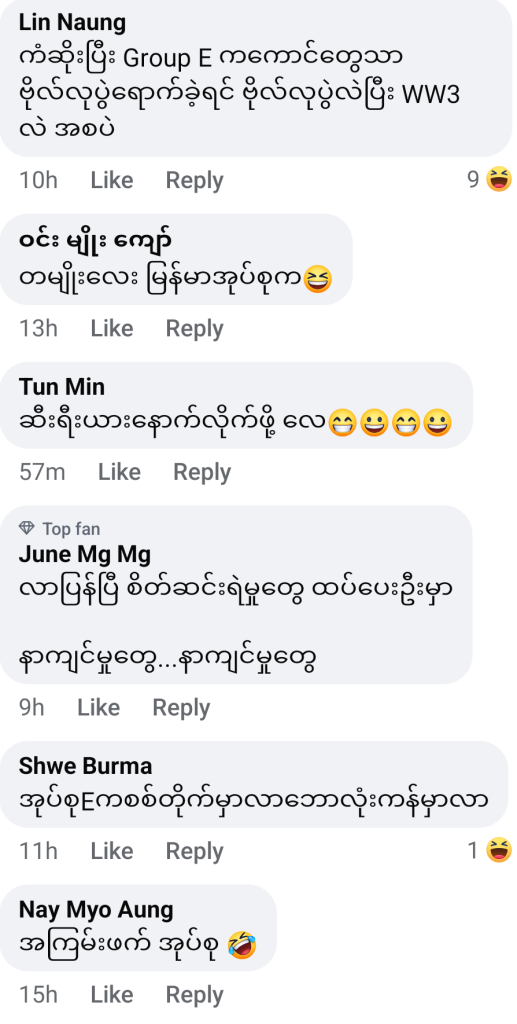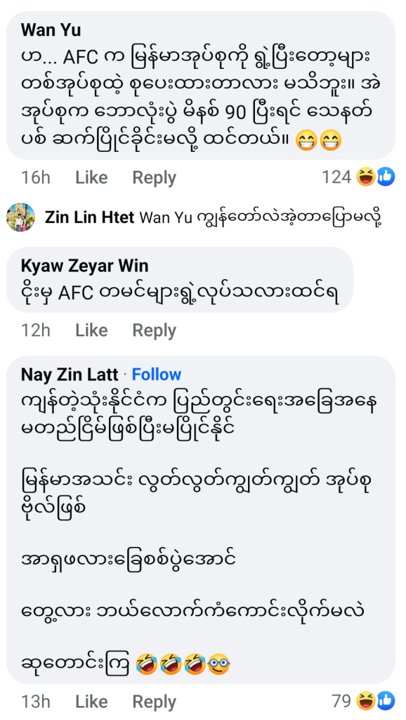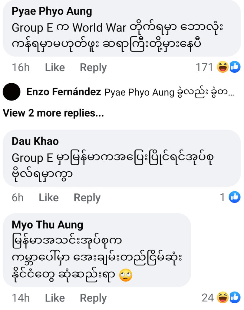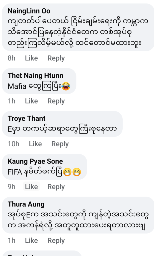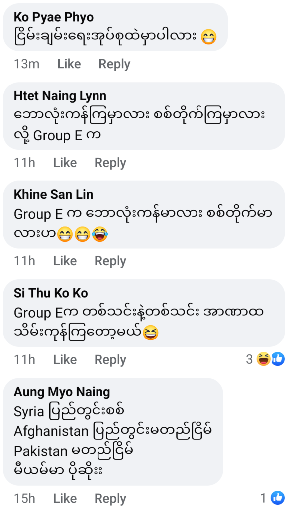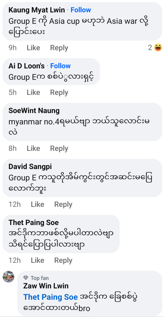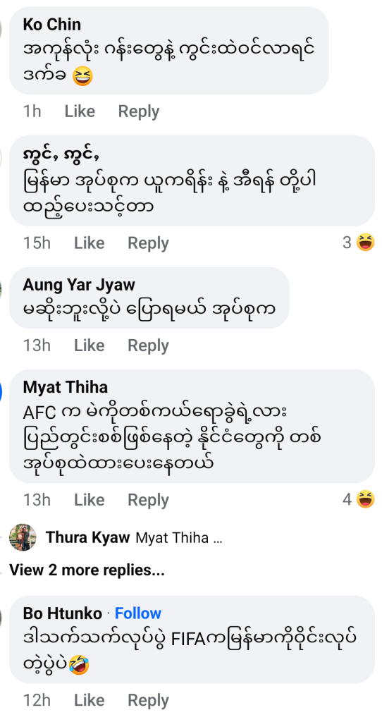 ၂၀၂၇ အာရှဖလားခြေစစ်ပွဲတွင် စစ်ဖြစ်ပွားနေပြီး နိုင်ငံရေးမတည်ငြိမ်သောနိုင်ငံများ သီးသန့်ဆုံတွေ့နေသည့်အပေါ် Asian Football Confederation ကို လှောင်ပြောင်ဝေဖန်မှုများရှိနေသလို အဆိုပါ ဆီးရီးယား၊ အဖဂန်နစ္စတန်၊ မြန်မာနှင့် ပါကစ္စတန်တို့ ဆုံတွေ့ကြောင်း ဖော်ပြထားသည့် မြန်မာနိုင်ငံဘောလုံးအဖွဲ့ချုပ်၏ သတင်းထုတ်ပြန်မှုအောက်တွင်လည်း လှောင်ပြောင်ဝေဖန်မှု ရာနှင့်ချီရှိနေသည်ကို တွေ့ရှိရသည်။