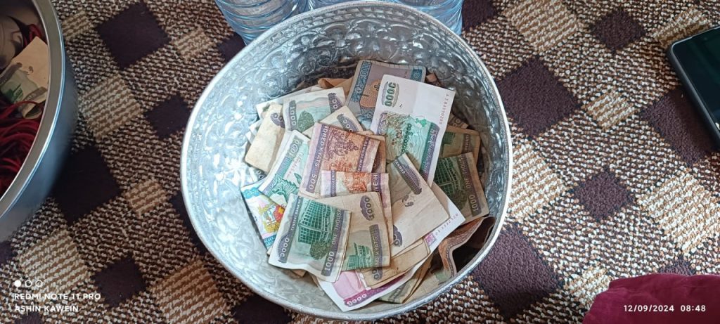 ယမန်နေ့ ဒီဇင်ဘာလ ၉ ရက်နံနက်ပိုင်းက မန္တလေး၊ ၂၉-လမ်း၊ ၈၅ လမ်း×၈၆ လမ်းကြား ဈေးအတွင်း ဘုန်းကြီးတစ်ပါးနှင့် လူပုဂ္ဂိုလ်များ အလှူခံနေကြကြောင်း၊ အဆိုပါအလှူခံအဖွဲ့တွင် ဘုန်းကြီးက သပိတ်ဖြင့်ရှေ့ကကြွကာ ယောဂီအညိုရောင်ဝတ်ထားသည့်လူပုဂ္ဂိုလ်နှင့် အခြားလူ(၁၀)ဦးခန့်က နောက်ကလိုက်ကြကြောင်း၊ အလှူငွေ လှူဒါန်းသူများအား အဆောင်လက်ဖွဲ့များ ပြန်ပေးကြကြောင်းလည်း သိရသည်။