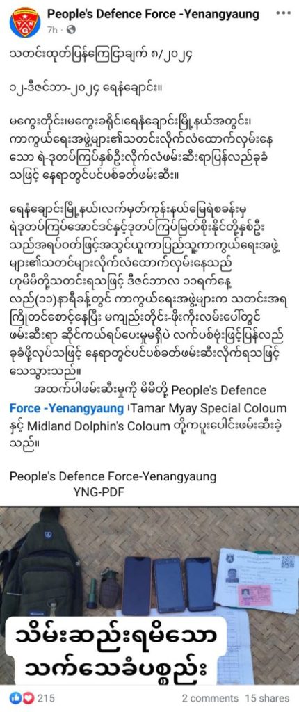 အထက်ပါ သတ်ဖြတ်မှုကို People’s Defence Force -Yenangyaung၊ Tamar Myay Special Coloum နှင့် Midland Dolphin’s Coloum တို့ ပူးပေါင်းကျူးလွန်ခဲ့ခြင်းဖြစ်ကြောင်းလည်း People’s Defence Force-Yenangyaung က ဝန်ခံထားသည်။