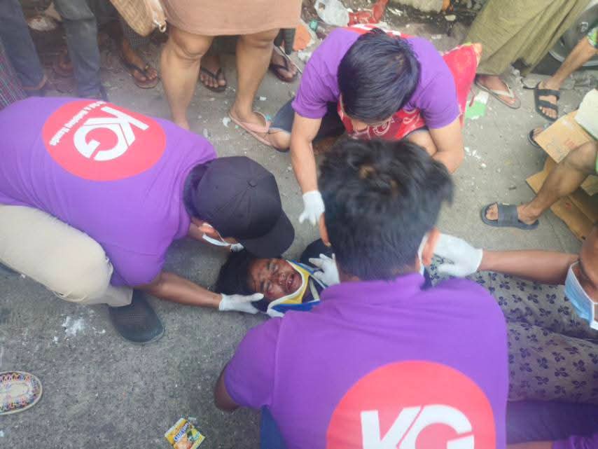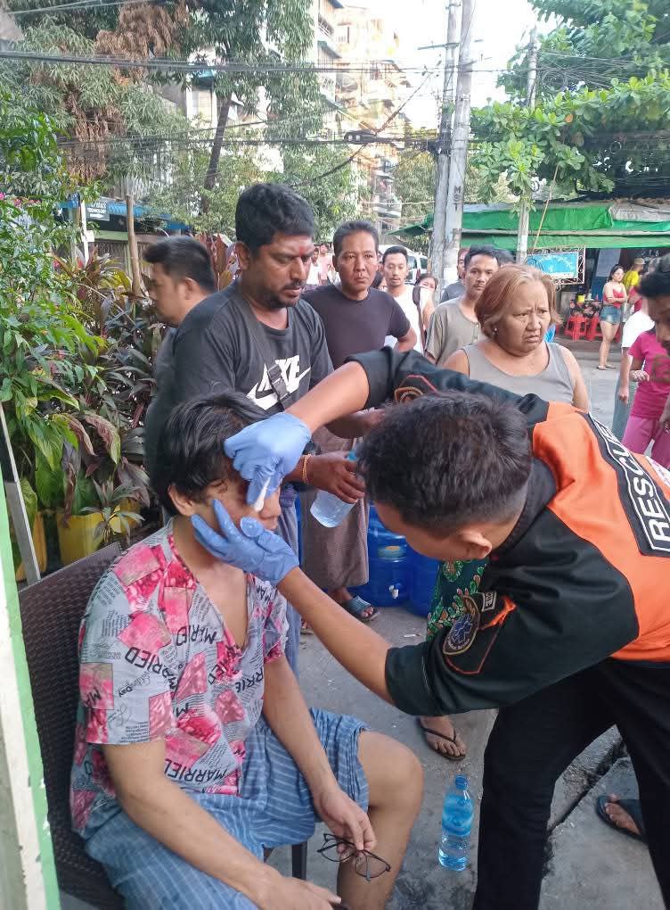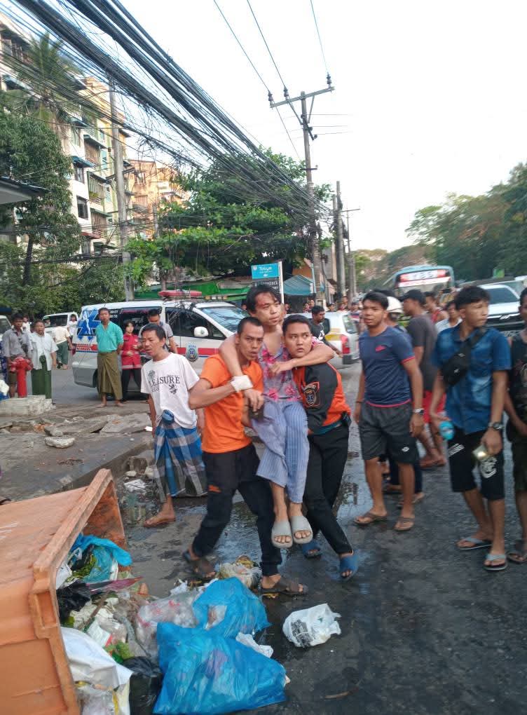 ဒဏ်ရာရသူနှစ်ဦးကို မြန်မာမွတ်စလင်မ် ပရဟိတအဖွဲ့မှ သူနာတင်ယာဉ်၊ ကိုကြီးနှင့် ညီအစ်ကိုများပရဟိတအသင်းမှ သူနာတင်ယာဉ်တို့ဖြင့် ရန်ကုန်ဆေးရုံကြီးသို့ ပို့ဆောင်ပေးခဲ့ကြောင်း သိရသည်။