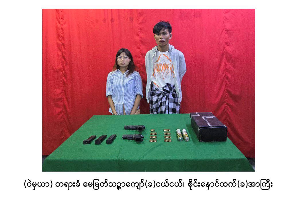 အဆိုပါဖြစ်စဉ်နှင့်ပတ်သက်၍ လုံခြုံရေးတပ်ဖွဲ့ဝင်များက တရားခံများအား ဖော်ထုတ် ဖမ်းဆီးရမိရေးဆောင်ရွက်ခဲ့ရာ အကြမ်းဖက်မှုကို မလိုလားသော ပြည်သူများ၏ ပူးပေါင်းပါဝင် သတင်းပေးမှုများကြောင့် ဒီဇင်ဘာလ ၂၄ ရက်နေ့ ည ၉ နာရီ ၁၅ မိနစ်တွင် လုပ်ကြံပစ်ခတ်မှု ကျူးလွန်သူများဖြစ်ကြသည့် တရားခံ ဇော်ဇော်ဗိုလ်(ခ)ထွန်းထွန်းအောင်(၂၉)နှစ်၊ (ဘ)ဦးသိန်းဇော် နှင့် မေမြတ်သဉ္ဇာကျော်(ခ)ငယ်ငယ်(၂၃)နှစ်၊ (ဘ)ဦးမြင့်တို့အား ၎င်းတို့နေထိုင်ရာ အင်းစိန်မြို့နယ်၊ အောင်ဆန်း ရပ်ကွက်၊ အောက်မင်္ဂလာဒုံလမ်း၊ အမှတ်(၇၈၂)နေအိမ်၌ ပြစ်မှုကျူးလွန်ရာတွင် အသုံးပြုခဲ့သည့် CZ 2075 RAMI P အမျိုးအစား အနက်ရောင်ပစ္စတိုသေနတ် ၁ လက်၊ ၎င်းကျည် ၅ တောင့်၊ လုပ်ကြံပစ်ခတ်စဉ်အတွင်းအသုံးပြုစီးနင်းခဲ့သည့် ယာဉ်အမှတ် YGN-8 GG-6136 Fielder အဖြူရောင်အငှားယာဉ်တို့နှင့်အတူ ဖမ်းဆီးရမိခဲ့သည်။