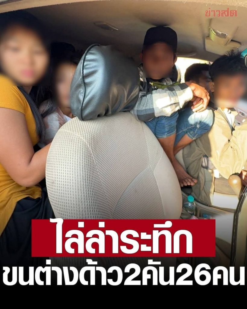 အမြန်လမ်းရဲတပ်ဖွဲ့ဟာ ပတ်ချာဘွန်းခရိုင်မှာ အရှိန်ပြင်းပြင်းနဲ့ မောင်းနှင်ထွက်ပြေးတဲ့ တိုယိုတာဗီဂိုယာဥ်နဲ့ ဖော်ကျူနာ မော်တော်ယာဉ်နှစ်စီးကို လိုက်ပါဖမ်းဆီးနိုင်ခဲ့ပြီး အထောက်အထားမဲ့ မြန်မာလုပ်သား ၂၆ ဦးကို ယာဥ်ပေါ်က တွေ့ရှိ ဖမ်းမိခဲ့တာပါ။