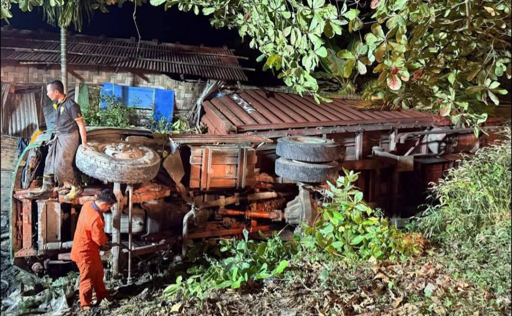 MITSUBISHI FUSO TRUCK ယာဥ်တိမ်းမှောက်မှုကြောင့် ကားခေါင်းခန်းအတွင်းညပ်နေသော အသက် ၃၀ အရွယ် ယာဥ်နောက်လိုက် အမျိုးသားကို ၃၆ မိနစ်ခန့်အကြာတွင် ကယ်ထုတ်ခဲ့ရပြီး ထပ်မံ၍ ယာဥ်မောင်းဖြစ်သူ အသက် ၃၀ အရွယ် အမျိုးသားကိုလည်း တစ်နာရီနီးပါးကြာသည်အထိ ကယ်ဆယ်ခဲ့ရကြောင်း သိရသည်။