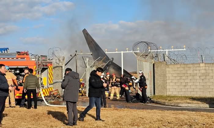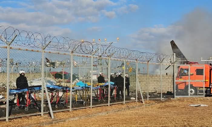 Jeju Air လေယာဉ်ဟာ တောင်ကိုရီးယားနိုင်ငံက Muan အပြည်ပြည်ဆိုင်ရာလေဆိပ်ကို ဆင်းသက်ချိန် ပျက်ကျမှုဖြစ်ပွားခဲ့တာကြောင့် အနည်းဆုံး ၂၉ ဦးသေဆုံးခဲ့တယ်လို့ Yonhap သတင်းဌာနက ဖော်ပြပါတယ်။
