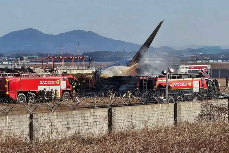 ခရီးသည် ၁၇၅ ဦးနဲ့ လေယာဉ်အမှုထမ်း ခြောက်ဦး တင်ဆောင်ပြီး ထိုင်းနိုင်ငံ ဘန်ကောက်မြို့က ပျံသန်းထွက်ခွာလာတဲ့ Jeju Air လေယာဥ် 7C2216 Boeing 737-800 ဟာ ဒီမနက် ၉ နာရီ ၇ မိနစ်ခန့်မှာ Muan လေဆိပ်ပြေးလမ်းအဆင်း ဘီးလုံးမကျတဲ့ ချို့ယွင်းမှုဖြစ်ပွားပြီး ကွန်ကရစ် ခြံစည်းရိုးနဲ့တိုက်မိလို့ စက္ကန့်ပိုင်းအတွင်း မီးလောင်ပေါက်ကွဲသွားခဲ့တာကို ရုပ်သံတွေမှာ တွေ့မြင်ရတာပါ။