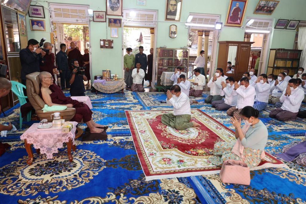 နိုင်ငံတော်စီမံအုပ်ချုပ်ရေးကောင်စီ (SAC) ဥက္ကဋ္ဌ ဗိုလ်ချုပ်မှူးကြီးမင်းအောင်လှိုင်သည် မန္တလေးမြို့၊ မဟာဝိဇိတာရုံ ပရိယတ္တိစာသင်တိုက် ဦးစီးပဓာနနာယက ဆရာတော်ကြီးနှင့် မဟာဂန္ဓရုံကျောင်းတိုက် ဆရာတော်ကြီးတို့၏ ကျန်းမာရေးအခြေအနေများအား ယနေ့တွင် သွားရောက်ကြည့်ရှု့ကာ လိုအပ်သည်များ ဆောင်ရွက်ပေးခဲ့ပြီး ရွှေကျီးမြင်ဘုရားအား သွားရောက်ဖူးမြော်ကြည်ညိုခဲ့သည်။
