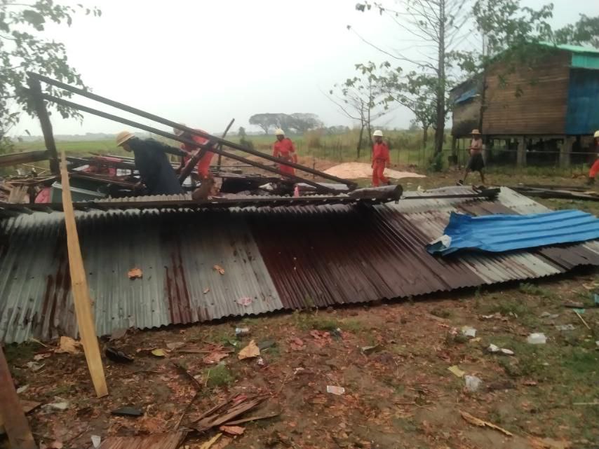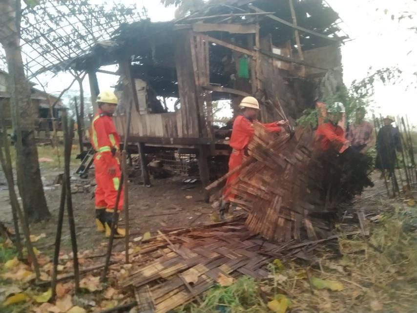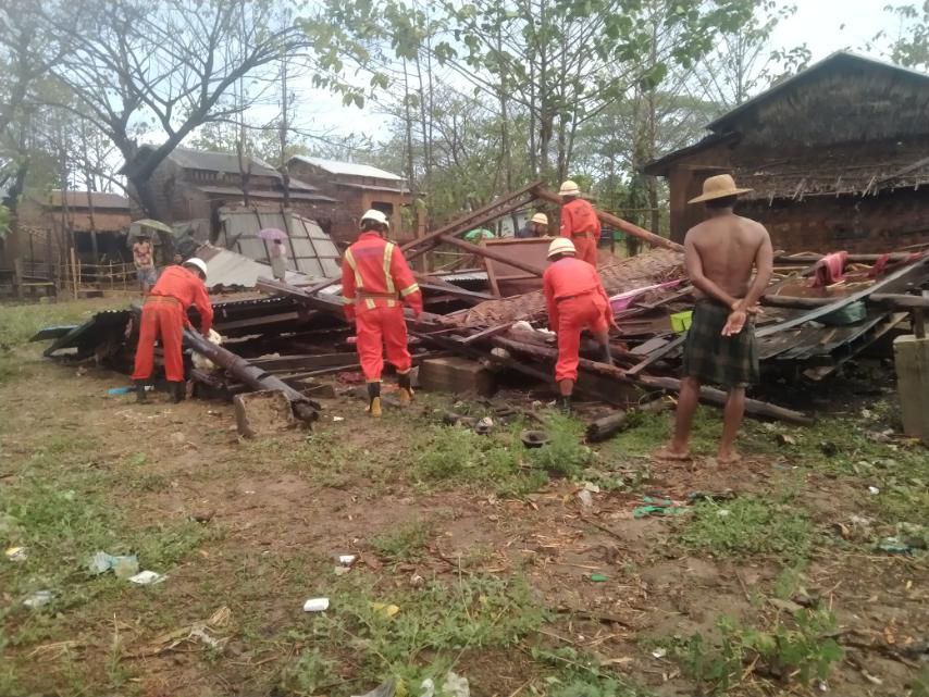 နေအိမ်ပြိုကျမှုနှင့် အမိုးလန်မှုများကို စက်ဒေါင့်ကြီးနယ်မြေမီးသတ်စခန်းမှ သန္ဓေအရန် မီးသတ်တပ်ဖွဲ့ဝင်များက ကယ်ဆယ်ရှင်းလင်းရေးလုပ်ငန်းမျာလုပ်ဆောင်ပေးခဲ့ပြီး ကျေးရွာအုပ်ချုပ်ရေးအဖွဲ့တို့က လေပြင်းဒဏ်သင့်မိသားစုဝင် ၁၄ ဦးကို နီးစပ်ရာဆွေမျိုးများထံ နေရာချထားပေးခဲ့ကြောင်း သိရသည်။