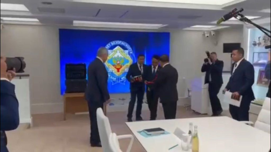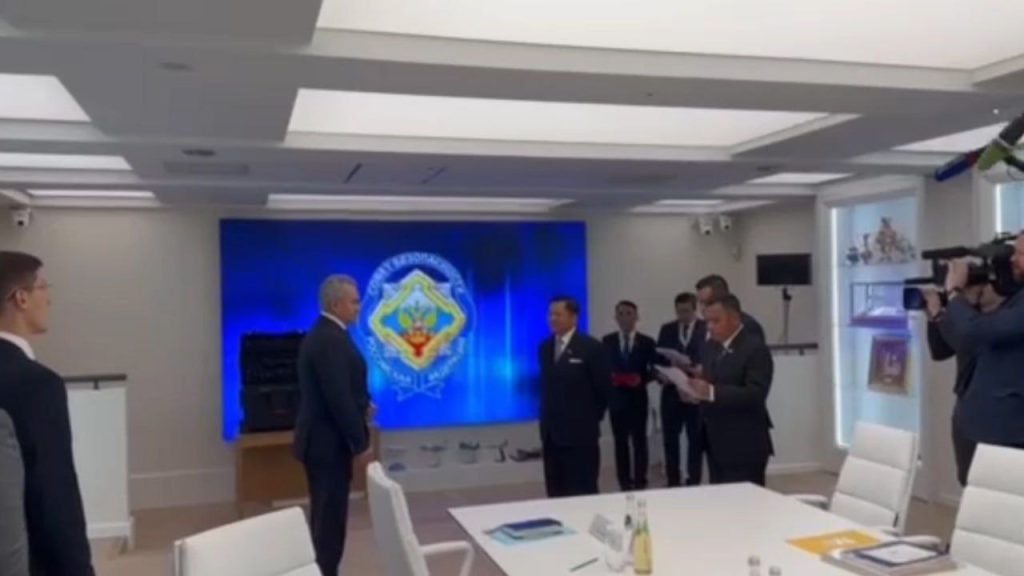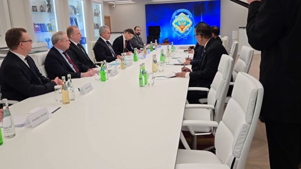 SAC ဥက္ကဋ္ဌသည် ရုရှားနိုင်ငံလုံခြုံရေးကောင်စီအတွင်းရေးမှူးနှင့် ဒေသစံတော်ချိန် နံနက် ၉ နာရီခွဲတွင် ရုရှားနိုင်ငံလုံခြုံရေးကောင်စီအတွင်းရေးမှူရုံး၌ တွေ့ဆုံဆွေးနွေးခဲ့ပြီး SAC ဥက္ကဋ္ဌနှင့်အတူ ကောင်စီတွဲဖက်အတွင်းရေးမှူး ဗိုလ်ချုပ်ကြီး ရဲဝင်းဦး၊ အမျိုးသားလုံခြုံရေးဆိုင်ရာအကြံပေးပုဂ္ဂိုလ် ဗိုလ်ချုပ်ကြီး မိုးအောင်၊ ရုရှားဖက်ဒရေးရှင်းနိုင်ငံဆိုင်ရာ မြန်မာသံအမတ်ကြီးတို့ တက်ရောက်ခဲ့သည်။
