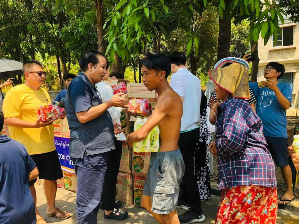 ဧပြီလ ၅ ရက်နေ့က နေပြည်တော်ကောင်စီနယ်မြေ၊ သဘာဘေးအန္တရာယ်ဆိုင်ရာစီမံခန့်ခွဲရေးအဖွဲ့နဲ့ ပျဉ်းမနားမြို့နယ်အတွင်းရှိ ငလျင်ဒဏ်သင့်သူများအတွက် ပျဉ်မနားမြို့နယ်အုပ်ချုပ်ရေးရုံးမှတစ်ဆင့် မြန်မာနိုင်ငံရုပ်ရှင်အစည်းအရုံးက Royal D ၊ ခေါက်ဆွဲခြောက်တို့ကိုသွားရောက်လှူဒါန်းခဲ့တာပါ။