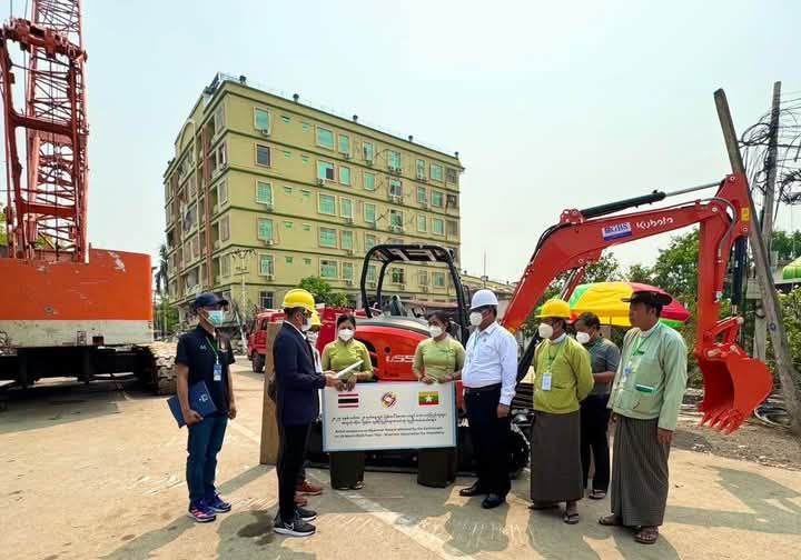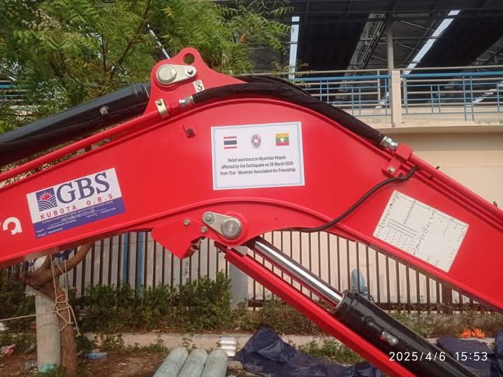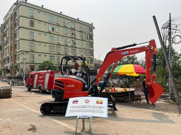မြန်မာ့ငလျင်ဘေးဒဏ် ပြန်လည်ထူထောင်ရေးအတွက် ထိုင်း-မြန်မာချစ်ကြည်ရေးအသင်းမှ ဘတ် ၁၀ သိန်းတန် မြေတူးကားတစ်စီးလှူဒါန်းခဲ့ကြောင်း မြန်မာနိုင်ငံဆိုင်ရာ ထိုင်းသံရုံးမှ အသိပေးထုတ်ပြန်ထားသည်။