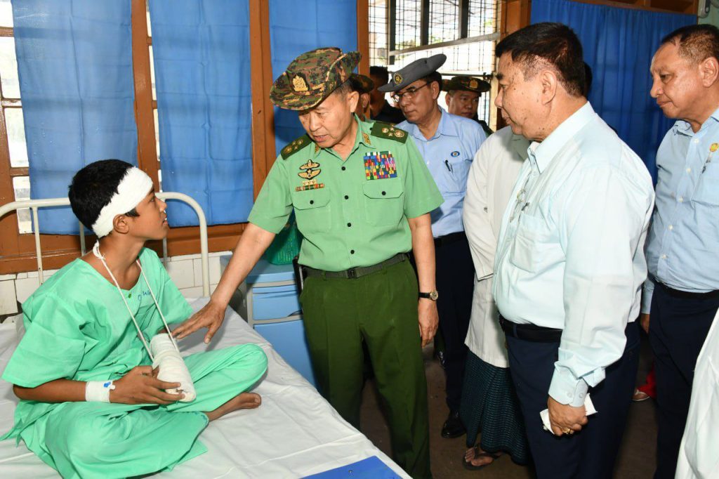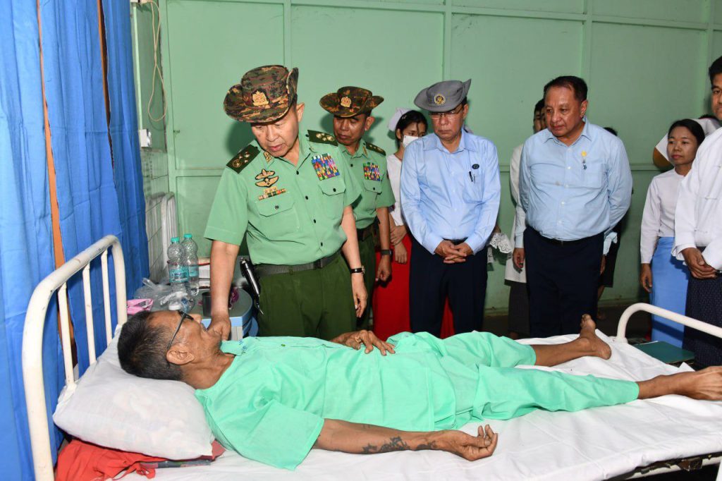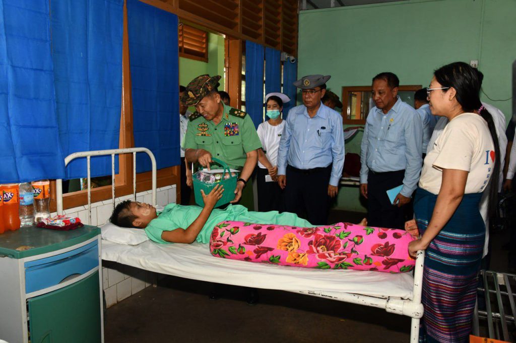 ထို့နောက် နိုင်ငံတော်စီမံအုပ်ချုပ်ရေးကောင်စီဒုတိယဥက္ကဋ္ဌ ဒုတိယဝန်ကြီးချုပ် နှင့် အဖွဲ့ဝင်များသည် တောင်ငူပြည်သူ့ဆေးရုံသို့ ရောက်ရှိရာ ဆေးရုံအုပ်ကြီးနှင့် တာဝန်ရှိသူများက ကြိုဆိုနှုတ်ဆက်ကြသည်။ ထို့နောက် နိုင်ငံတော်စီမံအုပ်ချုပ်ရေး ကောင်စီ ဒုတိယဥက္ကဋ္ဌ ဒုတိယဝန်ကြီးချုပ်နှင့် အဖွဲ့ဝင်များသည် ငလျင်ဒဏ်ကြောင့် ထိခိုက်ဒဏ်ရာ ရရှိခဲ့သဖြင့် တက်ရောက်ဆေးကုသမှုခံယူလျက်ရှိသည့် အရပ်သား ပြည်သူများကို လိုက်လံကြည့်ရှု၍ ထိခိုက်ဒဏ်ရာရှိမှု အခြေအနေ၊ ကျန်းမာရေးစောင့်ရှောက်မှု အခြေ အနေများ၊ ရောဂါသက်သာပျောက်ကင်းမှု အခြေအနေများကို တစ်ဦးချင်း ရင်းရင်းနှီးနှီး မေးမြန်း အားပေးစကားပြောကြားကာ စားသောက်ဖွယ်ရာများနှင့် ထောက်ပံ့ငွေများကို လည်းကောင်း ဆေးရုံမှဝန်ထမ်းများအတွက် ချီးမြှင့်ငွေများကို လည်းကောင်း ပေးအပ်ပြီး လိုအပ်သည်များကို တာဝန်ရှိသူများနှင့် ပေါင်းစပ်ညှိနှိုင်း ဆောင်ရွက်ပေးသည်။
