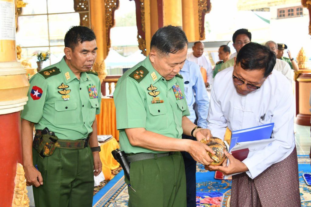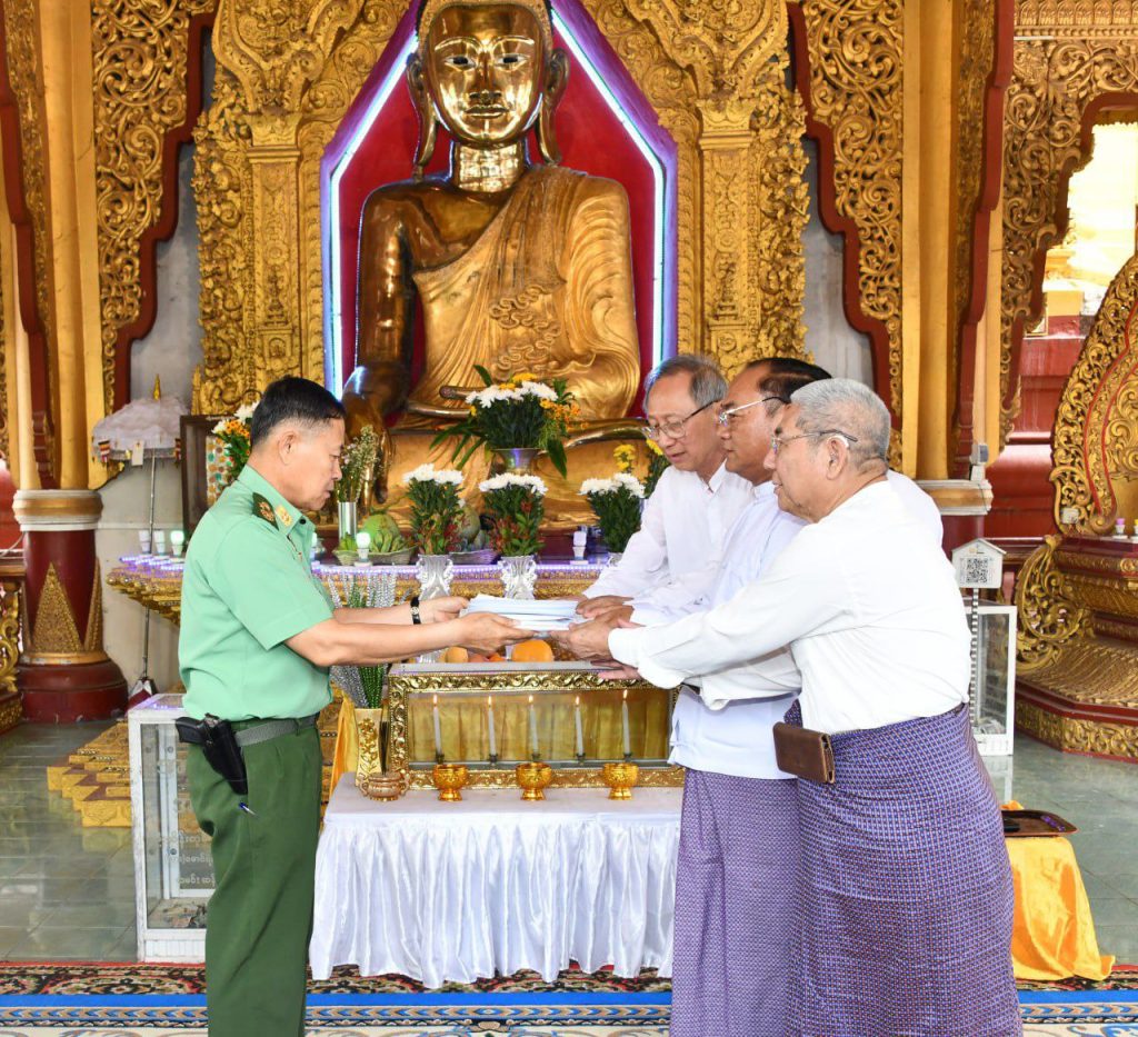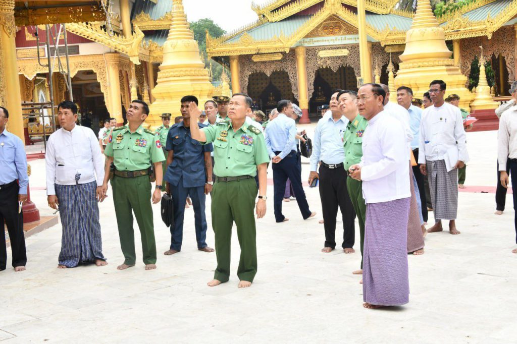 ယင်းနောက် နိုင်ငံတော်စီမံအုပ်ချုပ်ရေးကောင်စီဒုတိယဥက္ကဋ္ဌ ဒုတိယဝန်ကြီးချုပ် နှင့်အဖွဲ့ဝင်များသည် သမိုင်းဝင်ရွှေဆံတော် စေတီတော်သို့ရောက်ရှိကြရာ ပန်း၊ ရေချမ်း နှင့် ဆီမီးများကပ်လှူပူဇော်ကြပြီး စေတီတော်ကြီးအတွက် အလှူငွေများ ပေးအပ်လှူဒါန်းကာ ငလျင်ဒဏ်ကြောင့် စေတီတော်ကြီး၏ ထီးတော်မှ မြေခခဲ့သည့် အစိတ်အပိုင်းများ၊ ငလျင်ဒဏ်ကြောင့် စေတီတော်ကြီး၏ ထီးတော် အနည်းငယ် တိမ်းစောင်းနေမှု၊ စေတီတော်ကြီး အနည်းငယ်ကွဲအက်ပျက်စီးနေမှုအခြေအနေများကို လိုက်လံကြည့်ရှုစစ် ဆေးပြီး ဘုရားဖူးပြည်သူများ အန္တရာယ်ကင်းရှင်းစွာ လာရောက် ဖူးမြော် နိုင်ရန်အတွက် ပြုပြင်ခြင်းလုပ်ငန်းများကို ရှေးမူမပျက် အမြန်ဆုံး ဆောင်ရွက်သွားရန်နှင့် အခြားလိုအပ် သည်များကို လမ်းညွှန်မှာကြားသည်။ ထို့နောက် ဒုတိယဝန်ကြီးချုပ်နှင့်အဖွဲ့သည် ဂန္ဓဝင်ကိုးခန်းသိမ်တော်ကြီး၌ ရတနာဂုဏ်မြင့်ကျောင်း ရွှေလင်းယုန်ဆရာတော် အဂ္ဂမဟာသဒ္ဓမ္မဇောတိကဓဇ ဆရာတော် ဘဒ္ဒန္တအရဝိန္ဒာဘိဝသံ အမှူးပြုသော ဩဝါဒ ဆရာတော်ကြီးများအား ဖူးမြော်ကြည်ညို ကြကာလှူဖွယ်ပစ္စည်းများနှင့် ဝတ္ထုငွေများ ဆက်ကပ်လှူဒါန်းကြသည်။