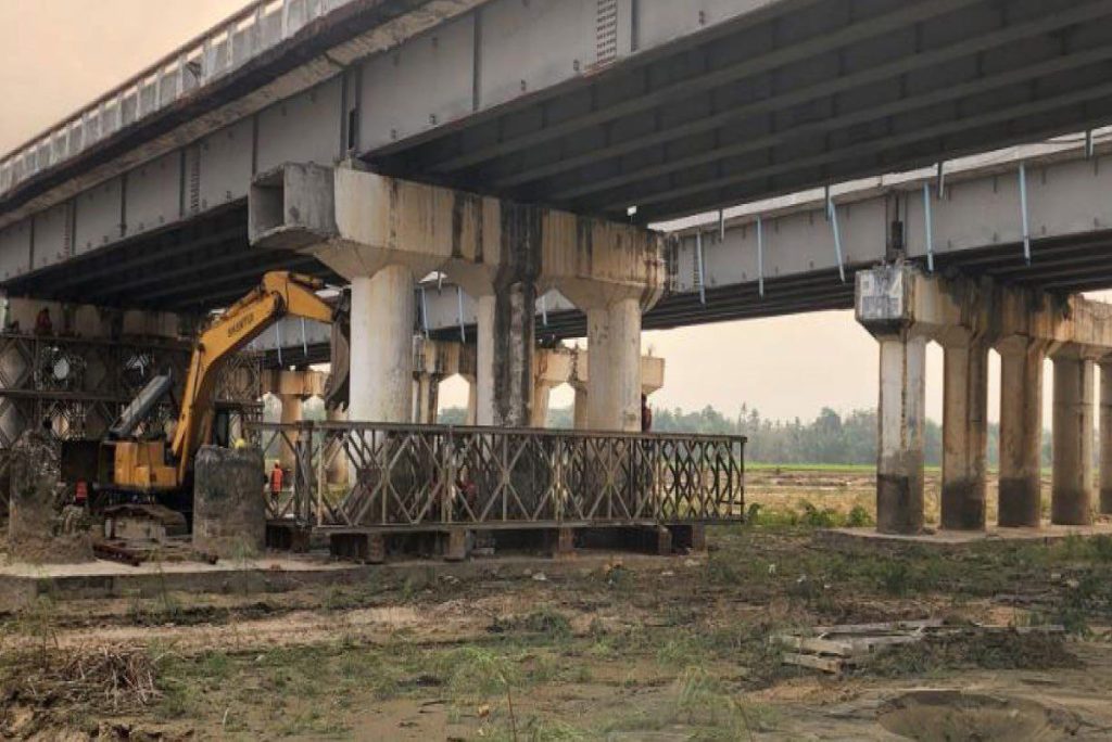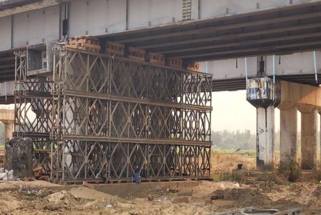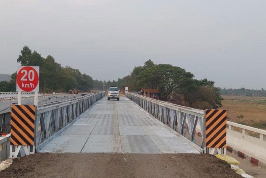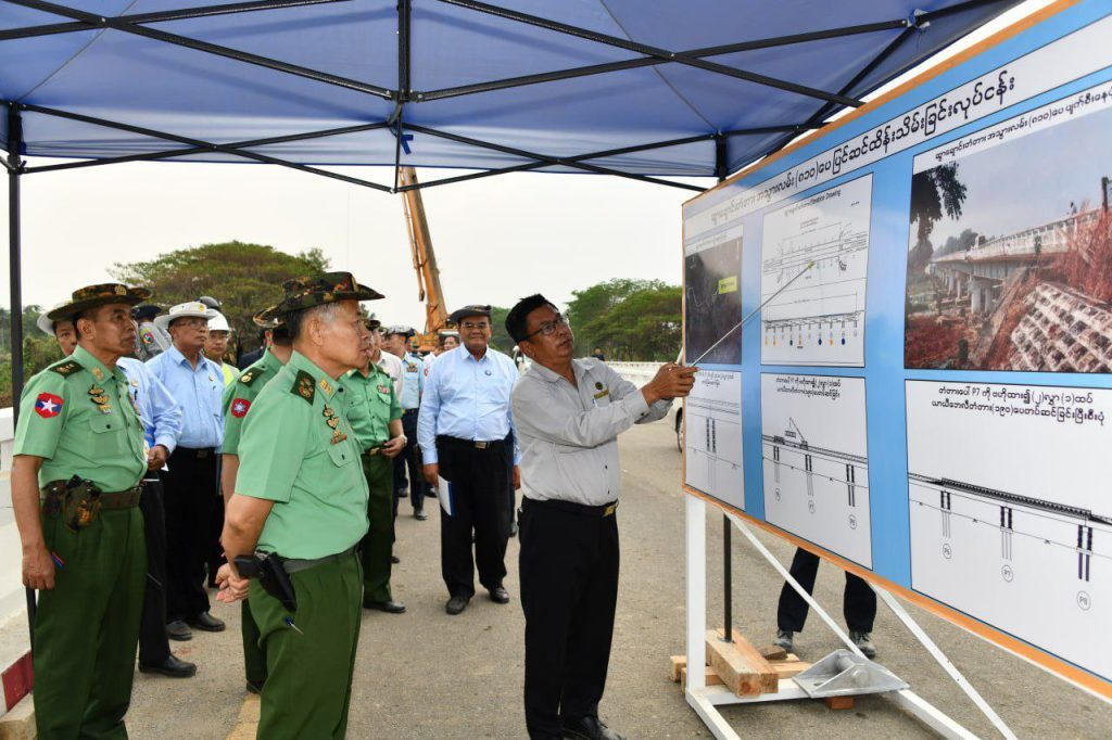 ယင်းနောက် နိုင်ငံတော်စီမံအုပ်ချုပ်ရေးကောင်စီဒုတိယဥက္ကဋ္ဌ ဒုတိယဝန်ကြီးချုပ် နှင့် အဖွဲ့ဝင်များသည် ရန်ကုန်-မန္တလေး အမြန်လမ်း ၁၆၅ မိုင်၁ ဖာလုံနှင့် ၁၆၅ မိုင် ၃ ဖာလုံကြားရှိ ဆွာချောင်းတံတား ငလျင်ဒဏ်ကြောင့် ထိခိုက်ပျက်စီးသွားခဲ့မှု အခြေအနေ များ၊ အသွားလမ်း ပေ (၈၁၀) ပြင်ဆင်ထိန်းသိမ်းခြင်းလုပ်ငန်းများ ဆောင်ရွက်နေမှု၊ P7 ကို ဗဟိုထား ၍ ၂ လွှာ ၁ ထပ် ယာယီဘေလီတံတား ပေ (၁၉၀) တပ်ဆင်ခြင်းလုပ်ငန်း ဆောင် ရွက်ပြီး စီးမှု အခြေအနေနှင့် ပေ (၄၀) ၃ လွှာ ၃ ထပ် ဘေလီငြမ်းထောက်ခြင်း လုပ်ငန်းဆောင်ရွက်နေမှု အခြေအနေများကို သွားရောက် ကြည့်ရှုစစ်ဆေးပြီး လိုအပ်သည်များကို လမ်းညွှန်မှာကြားသည်။