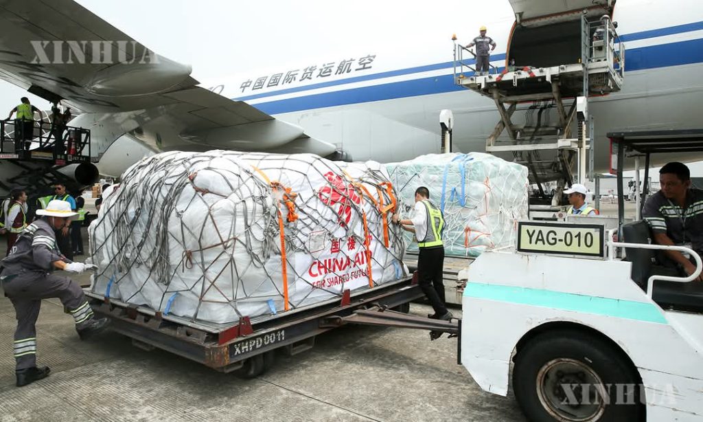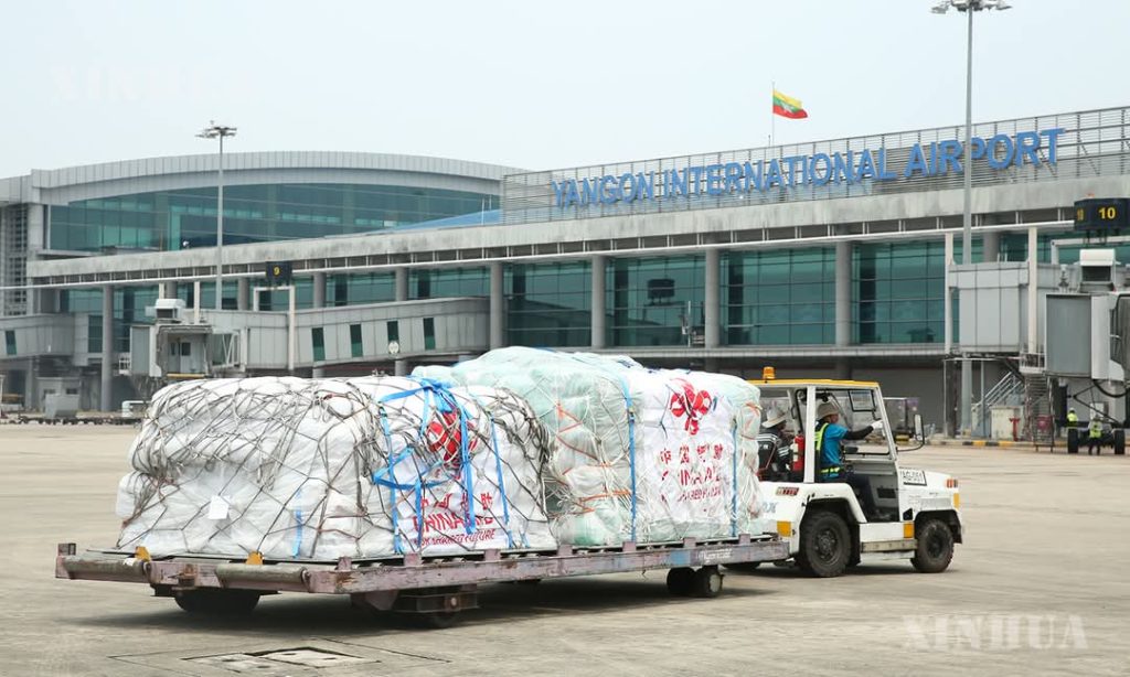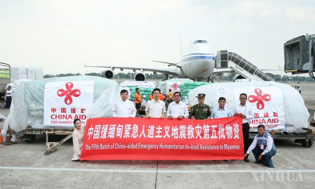 တရုတ်အစိုးရက မြန်မာနိုင်ငံကို ထောက်ပံ့ပေးသည့် ပဉ္စမအသုတ် အရေးပေါ် လူသားချင်းစာနာမှု ငလျင်ကယ်ဆယ်ရေးဆိုင်ရာ အကူအညီပစ္စည်းများသည် ယနေ့ ဧပြီ ၉ ရက်တွင် မြန်မာနိုင်ငံ ရန်ကုန်အပြည်ပြည်ဆိုင်ရာလေဆိပ်သို့ ရောက်ရှိခဲ့သည်။