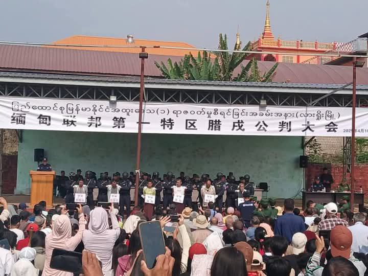 ဒီနေ့ ဧပြီ ၁၀ ရက်မနက်က လားရှိုးမြို့၊ မန်ဆူကျောင်းအနောက်ဘက်မှာရှိတဲ့ ကိုးကန့်ပါတီရုံးမှာ အမိန့်ချခဲ့တာဖြစ်ပြီး သေဒဏ်ပေးခံရသူ ၅ ဦးကို လေယာဉ်ကွင်းသွားတဲ့လမ်းက ဟိုပိတ်ဘက်မှာ သေနတ်နဲ့ အများရှေ့တင် ပစ်သတ်လိုက်တာပါ။