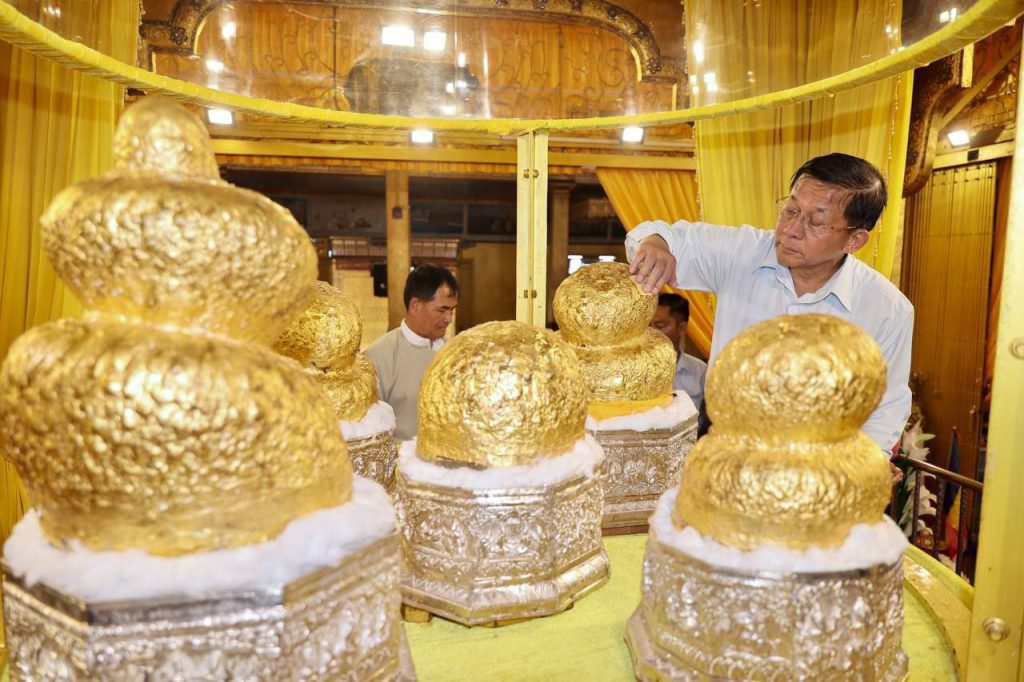 SAC ဥက္ကဋ္ဌသည် ငလျင်ဒဏ်ကြောင့် အင်လေးဖောင်တော်ဦးမြတ်စွာဘုရားရှိ သာသနိကအဆောက်အဦများ ထိခိုက်ခဲ့မှုများကို သွားရောက်စစ်ဆေးခဲ့ပြီး အင်းလေးဖောင်တော်ဦးမြတ်စွာဘုရား ပင်မစံကျောင်းတော်ကြီး ရေရှည်ကြံ့ခိုင်မှုရှိစေရေးအတွက် ပြုပြင်ထိန်းသိမ်းရေးလုပ်ငန်းများ ဆောင်ရွက်ရန် လိုအပ်သည့် ကျောက်၊ သဲ၊ သံချောင်းများနှင့် ဘိလပ်မြေတို့ကို အမြန်ဆုံးရောက်ရှိအောင် ဆောင်ရွက်ရန်လိုကြောင်း၊ စံကျောင်းတော်ကြီးရှိ အောက်ခြေတိုင်များ ကြံ့ခိုင်မှုရှိစေရေး မြန်မြန်ဆန်ဆန် စနစ်တကျဆောင်ရွက်သွားရန် မှာကြားခဲ့သည်။