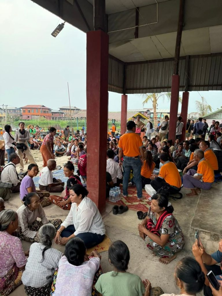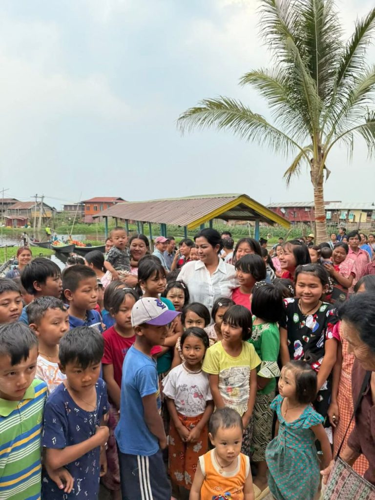 “ အမကတော့ အင်းလေးမှာ လာပြီးတော့ ငွေသားလာလှူပေးဖြစ်တာပါ။ တစ်အိမ်ထောင်ကို ၁၀ သိန်းနှုန်းနဲ့ပေါ့။ အိမ်ခြေပေါင်း ၂၂၉၇ အိမ်ကို လှူတာပါ။ အမလာလှူချိန်မှာ ပထမ အရင်ဘေးတုန်းကလည်း ၅ လကျော် ၆ လလောက်ပဲ ခြားသေးတာလေ။ အမ ငလျင်ဘေးကို ဒုတိယအကြိမ် ထပ်လာလှူရလို့ စိတ်ထဲမကောင်းပါဘူး။ ပထမဟာက အသက်ဆုံးရှုံးမှုမရှိဘူး။ ရေကတရိပ်ရိပ်တက်ပြီး အိမ်တွေ မြှုပ်နေတယ်။ ဒီတစ်ကြိမ်က ဝုန်းကနဲဆိုရင် မြေစရာ မြေလည်းမရှိဘူး ရေထဲမှာ အိမ်တွေပိပြီ ညပ်သွားတာတို့၊ ဓာတ်လိုက်ပြီး ဆုံးတာတို့၊ အောက်ကို ခုန်ချပေမယ့် အိမ်ပစ္စည်းတွေ ပိဆုံးသွားတာတို့ ရေမွန်းပြီးပိဆုံးတာရှိတယ်။ ကလေးတွေလည်း ဆုံးကြတယ်။ ၄၂ ယောက် ဆုံးတာလည်းရှိတယ်။ ကလေးနို့တိုက်မိခင်၊ ကလေးနဲ့ ဝုန်းကနဲလွင့်ထွက်သွားတာ ကလေးနဲ့ အမေဆုံးတော့ ရင်ထဲမှာ တော်တော်မကောင်းပါဘူး။ ဘယ်နေရာဖြစ်ဖြစ် ငလျင်ဘေးသင့်သူအားလုံး သူ့အကြောင်းနဲ့ သူဆိုပေမယ့် အားလုံးအတွက်က စိတ်မကောင်းစရာတွေပါ။ အင်းလေးကို ဒုတိယအကြိမ်ပြန်လာတာဆိုတော့ သူတို့လေးတွေကို မခိုင်နှင်းဝေက ထပ်ပြီး လာကူညီ ကြပြန်ပြီဆိုပြီး နှုတ်ဆက်ကြတော့ ဝမ်းသာရမှာလား ဝမ်းနည်းရမှာလား မသိဘူး။ စိတ်ထဲမှာလေ။ နောက်တစ်ခါလာရင်တော့ ပျော်ပျော်ရွှင်ရွှင်ပဲ လာချင်တယ်လို့ အားပေးစကားပြောဖြစ်တယ်”လို့ မခိုင်နှင်းဝေ ကပြောပါတယ်။