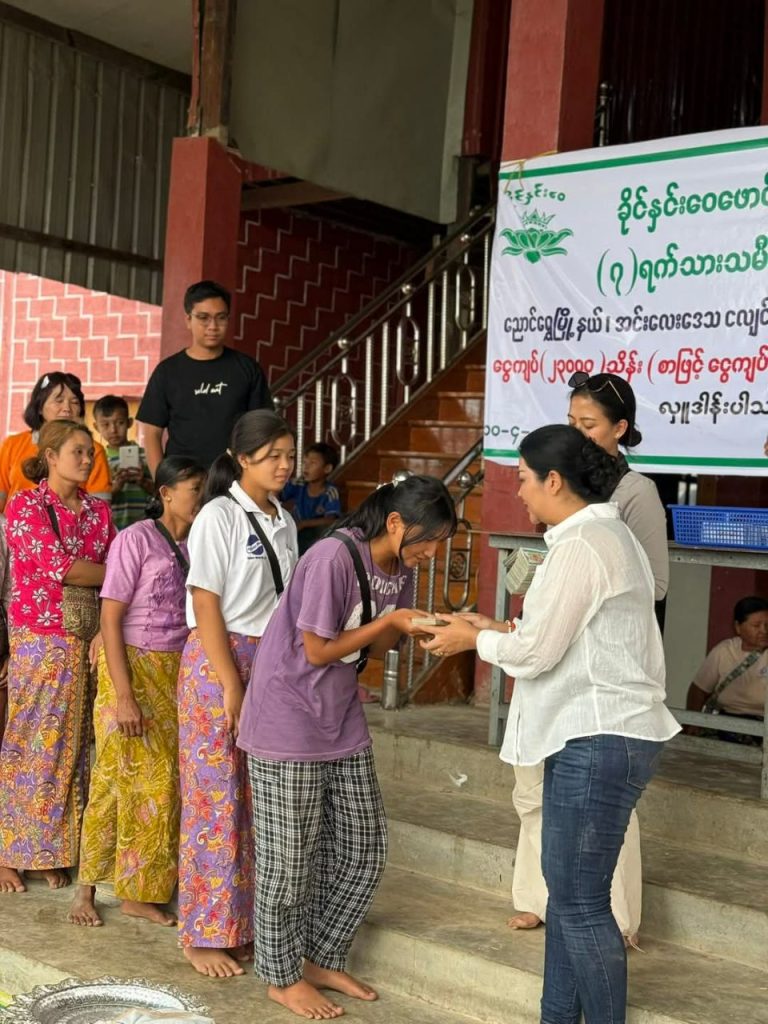 ဒီလှူဒါန်းမှုကတော့ ပျက်စီးသွားတဲ့ အိမ်စာရင်းတွေကို ဧပြီ ၄ ရက်က ရွာသူကြီးတွေ ကောက်ခံထားတဲ့ အိမ်ခြေ ၂၂၉၇ အိမ်အတွက် တစ်အိမ်ထောင်ကို ကျပ် ၁၀ သိန်းနှုန်းနဲ့ စုစုပေါင်း ကျပ်သိန်းပေါင်း ၂၃၀၀၀ ကို ထောက်ပံ့ကူညီမှုပေးခဲ့တယ်လို့ သိရပါတယ်။