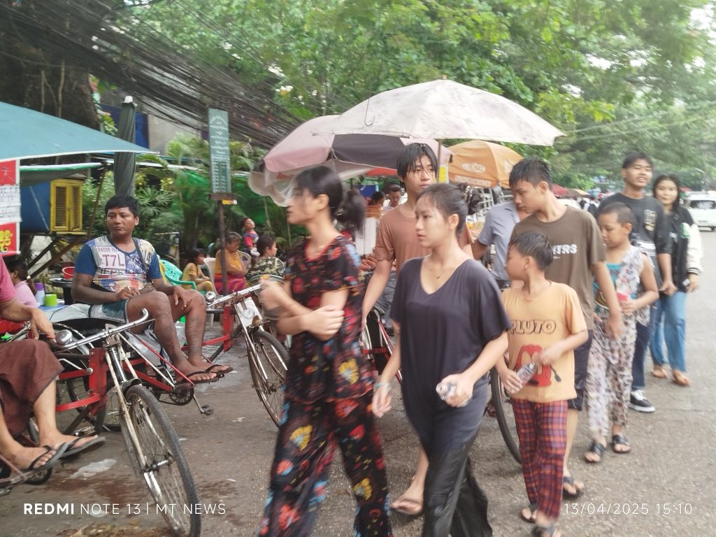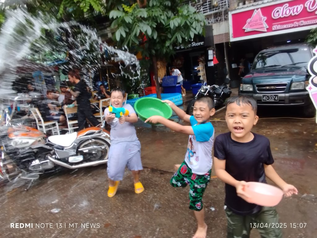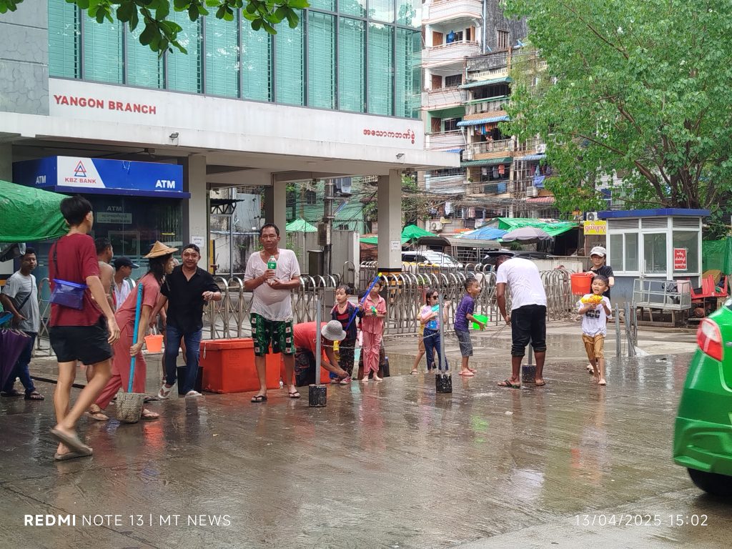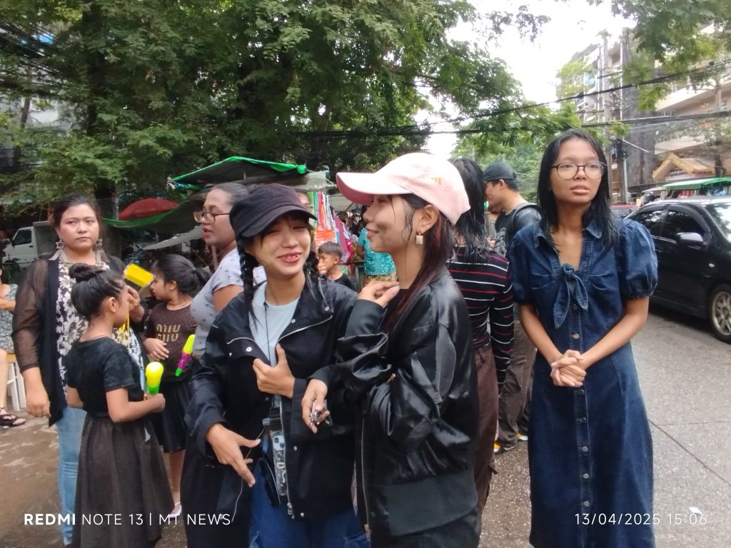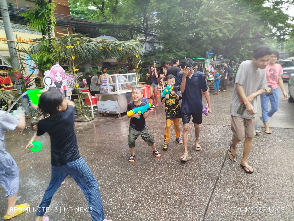 မနှစ်ကလည်း သနပ်ခါးသင်္ကြန်ပုံစံ ဆင်နွှဲခဲ့တဲ့ ဒီရပ်ကွက်မှာ လူငယ်တွေအများဆုံးသင်္ကြန်ကျနေသလို စတုဒိသာ ကျွေးမွေးတာလည်းမြင်ရပြီး ကလူ၏သို့ မြှူ၏သို့နဲ့ ရေပက်ခံထွက်နေတဲ့ ပျိုမေတွေလည်း အများသားပါ။