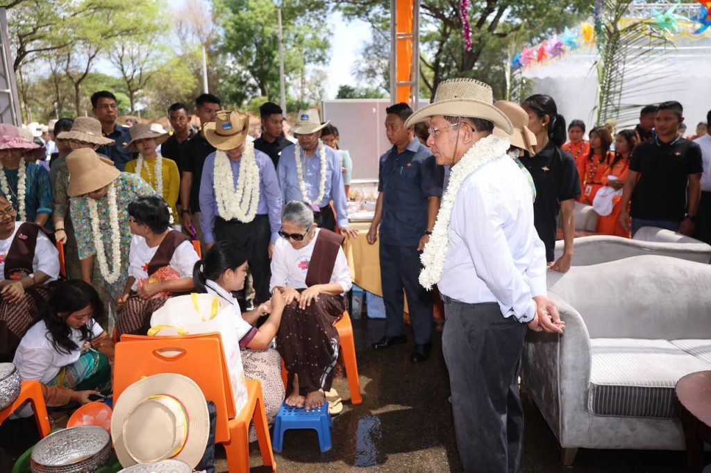 ယင်းနောက် SAC ဥက္ကဋ္ဌနှင့် ဇနီးနှင့် အဖွဲ့ဝင်များသည် မြန်မာတို့၏ မြန်မာ့ရိုးရာမဟာသင်္ကြန်ပွဲတော်ကို ပျူခေတ်၊ ပုဂံခေတ်၊ အင်းဝခေတ်၊ ကုန်းဘောင်ခေတ်၊ ရတနာပုံခေတ် စသည့် ခေတ် ၆ ခေတ်တို့တွင် ဆင်ယင်ကျင်းပခဲ့ပုံကို သရုပ်ဖော်တင်ဆက်မှုအား ကြည့်ရှုအားပေးခဲ့ပြီးနောက် သက်ကြီးရွယ်အို အဘိုးအဘွားများအား လက်ဆောင်ပစ္စည်းများ ပေးအပ်ပြီး မြန်မာ့ရိုးရာအစဉ်အလာနှင့်အညီ ခေါင်းလျှော်ပေးခြင်း၊ ခြေသည်း၊ လက်သည်း ညှပ်ပေးခြင်းတို့ ပြုလုပ်ပေးနေမှုကို ကြည့်ရှုအားပေးခဲ့ပြီး နေပြည်တော်လမ်းလျှောက်သင်္ကြန်တွင် မြန်မာ့ရိုးရာမဟာ သင်္ကြန်ပွဲတော်ကို မြန်မာမှု၊ မြန်မာ့ဟန်၊ မြန်မာ့ ရိုးရာယဉ်ကျေးမှု အစဉ်အလာနှင့်အညီ ကျင်းပနေမှု၊ စတုဒီသာကျွေးမွေးနေမှုများအား လိုက်လံကြည့်ရှုအားပေးနှုတ်ဆက်ခဲ့ ကြသည်။