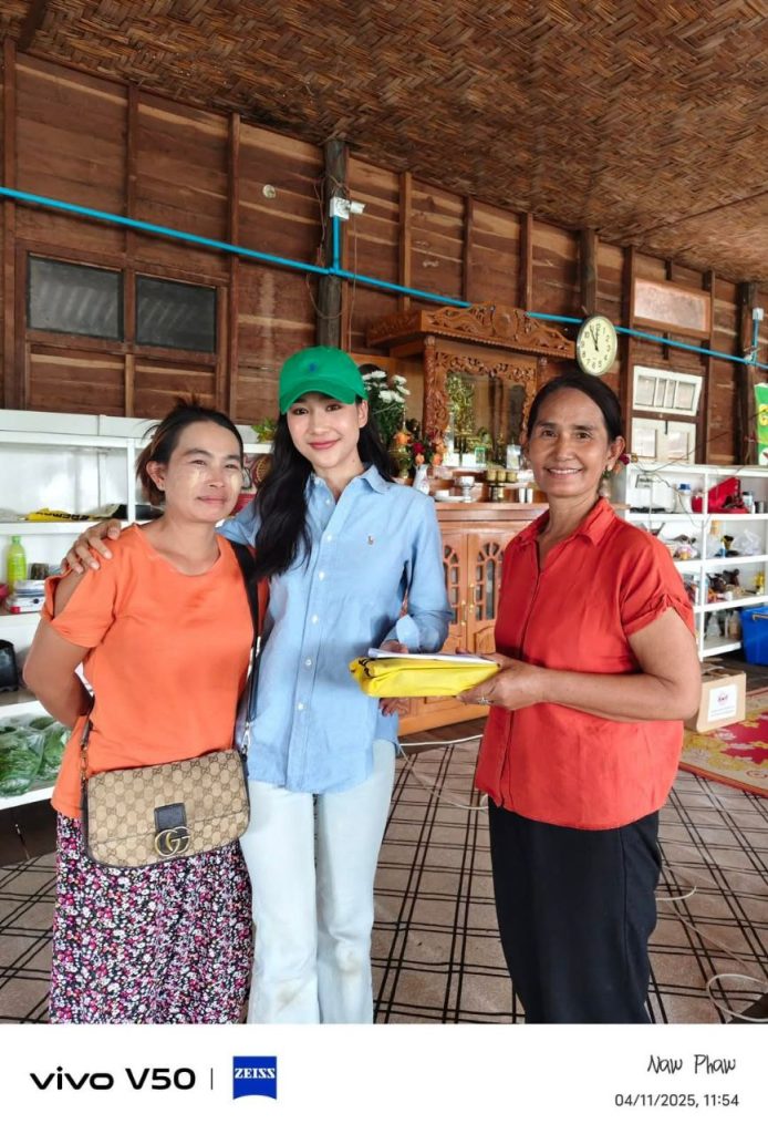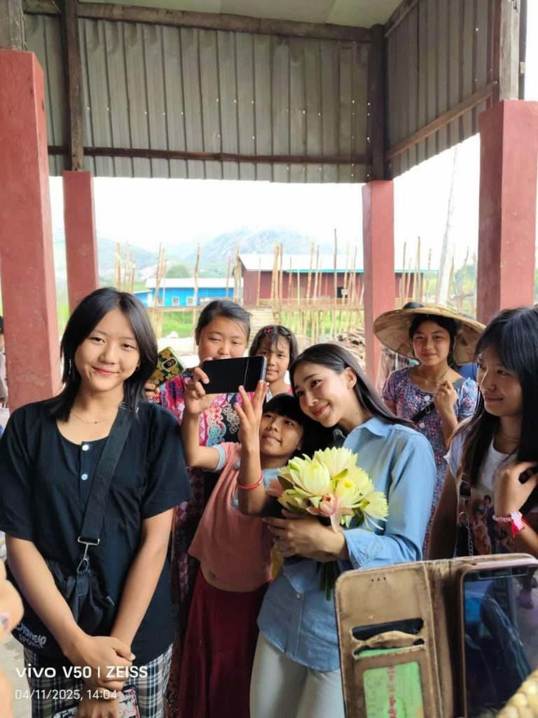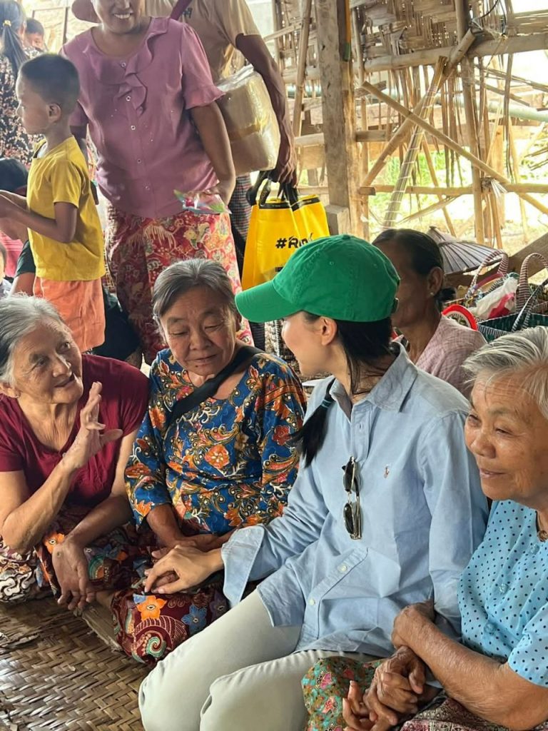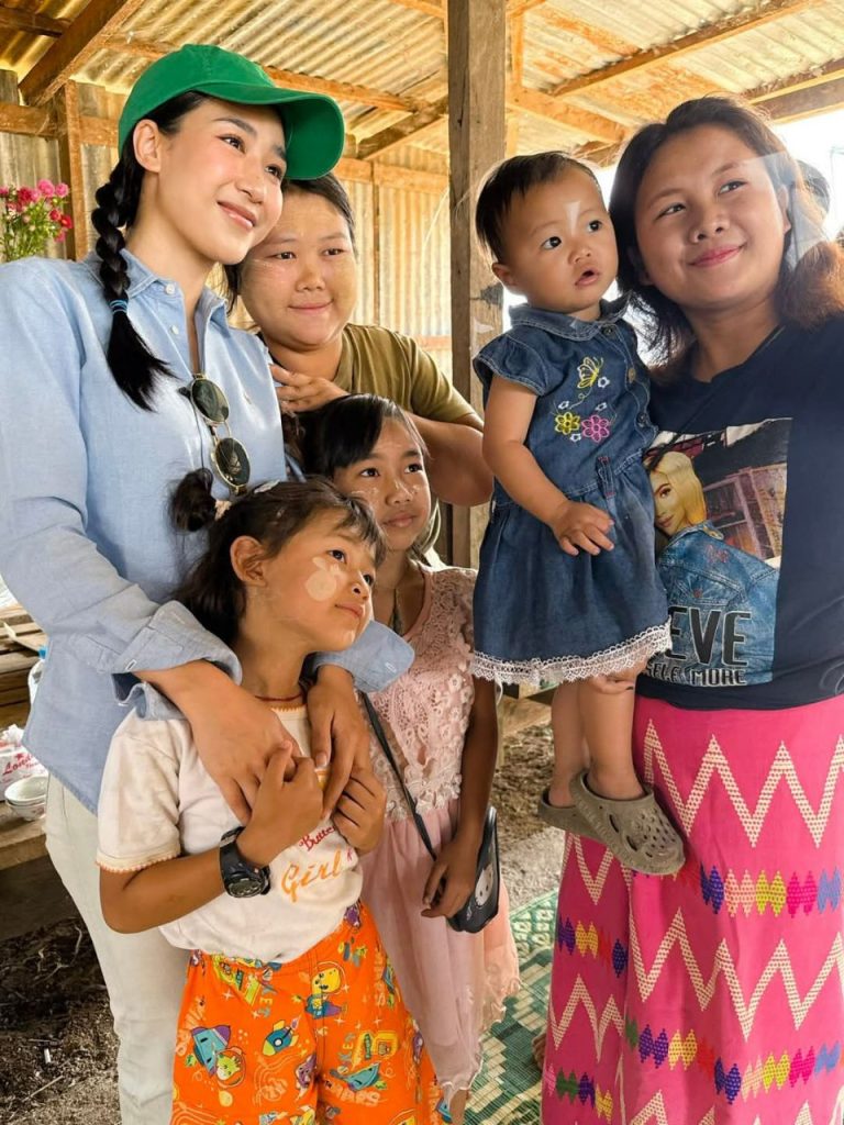 သူမကတော့ အင်းလေးဒေသကို ပြီးခဲ့တဲ့ ဧပြီလ ၁၁ ရက်ဝန်းကျင်က သွားခဲ့တာဖြစ်ပါတယ်။ အင်းလေးက ရွာနှစ်ရွာဖြစ်တဲ့ ဟန့်ချိုရွာနဲ့ ညောင်ဝန်းရွာက အိမ်ထောင်စု ၂၀ ကို အိမ်အသစ်ပြန်တည်ဆောက်ဖို့ ပံ့ပိုးပေးခဲ့တယ်လို့ သိရပါတယ်။ ကျန်ငွေတွေကိုတော့ Inle Youth Volunteers Network က သိမ်းဆည်းထားပြီး ပြန်လည်စီမံပေးမှာလို့ ဆိုပါတယ်။
