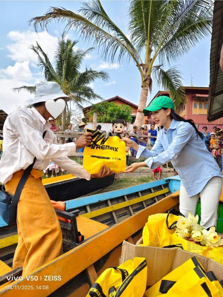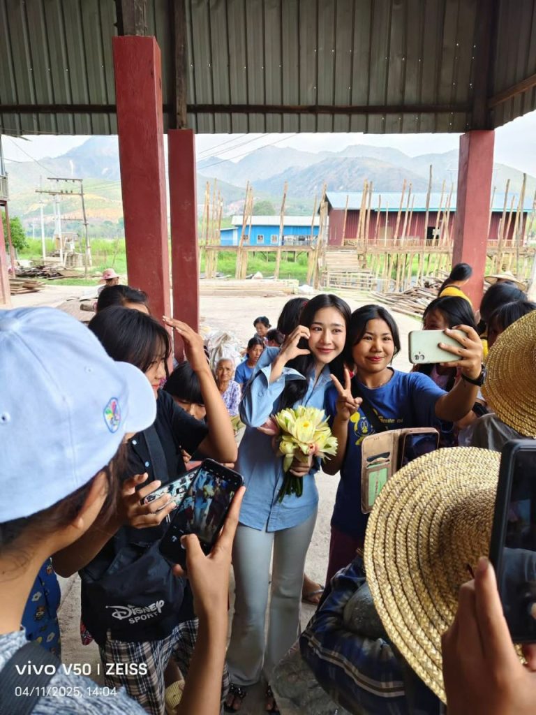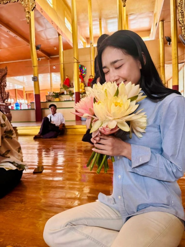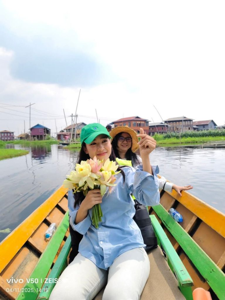 သူမကတော့ အင်းလေးဒေသကို ပြီးခဲ့တဲ့ ဧပြီလ ၁၁ ရက်ဝန်းကျင်က သွားခဲ့တာဖြစ်ပါတယ်။ အင်းလေးက ရွာနှစ်ရွာဖြစ်တဲ့ ဟန့်ချိုရွာနဲ့ ညောင်ဝန်းရွာက အိမ်ထောင်စု ၂၀ ကို အိမ်အသစ်ပြန်တည်ဆောက်ဖို့ ပံ့ပိုးပေးခဲ့တယ်လို့ သိရပါတယ်။ ကျန်ငွေတွေကိုတော့ Inle Youth Volunteers Network က သိမ်းဆည်းထားပြီး ပြန်လည်စီမံပေးမှာလို့ ဆိုပါတယ်။