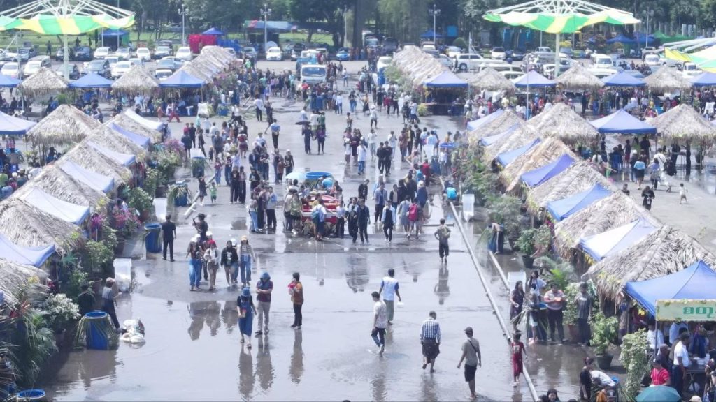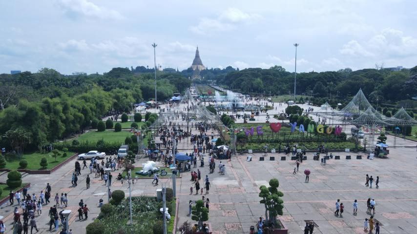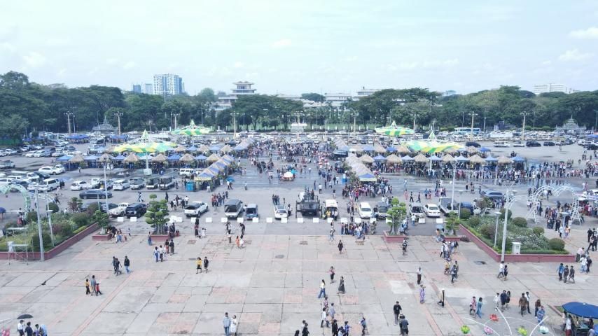 ပြည်သူ့ရင်ပြင်မှာ သင်္ကြန် အကြတ်နေ့နဲ့ အတက်နေ့ နှစ်ရက်တာကာလကို လမ်းလျှောက်သင်္ကြန်ကျင်းပ ပြုလုပ်တာဖြစ်ပြီး ပထမနေ့ဖြစ်တဲ့ ဒီနေ့မနက်မှာတော့ အရင်ရက်တွေထက် လာရောက်သူ များပြားခဲ့ပါတယ်။