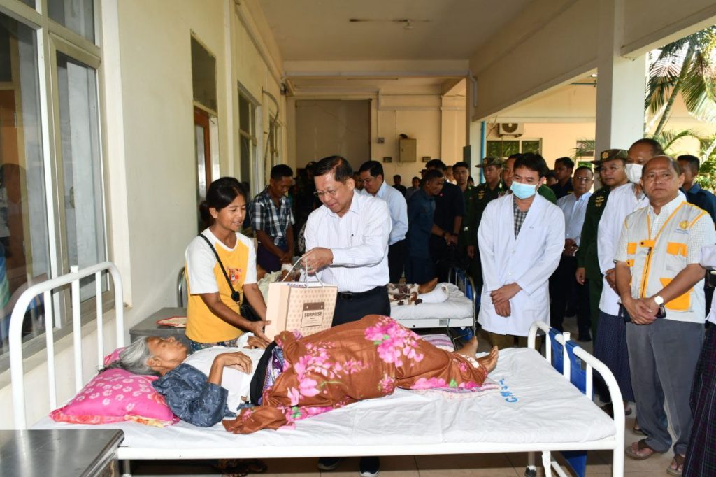 SAC ဥက္ကဋ္ဌသည် ကျောက်ဆည်မြို့ ပြည်သူ့ဆေးရုံကြီးသို့ ရောက်ရှိပြီး ငလျင်ဘေးဒဏ်ကြောင့် ထိခိုက်ဒဏ်ရာရရှိခဲ့သူများအား ဆေးဝါးကုသမှုဆောင်ရွက်ပေးနေမှုများနှင့် လူနာများအား သွားရောက်ကြည့်ရှု၍ ထောက်ပံ့ငွေများနှင့် စားသောက်ဖွယ်ရာများ ပေးအပ်ပြီးနောက် ဆေးရုံကြီးအတွင်း ထိခိုက်ပျက်စီးမှုများကို လိုက်လံကြည့်ရှုစစ်ဆေးပြီး အဆောက်အဦများအား ဆက်လက်သုံးစွဲရန် သင့်/မသင့် စစ်ဆေးဆောင်ရွက်သွားရန်နှင့် စနစ်တကျစစ်ဆေးပြီးမှသာ သုံးစွဲရန်သင့်သော အာမခံချက်ရှိသည့် အဆောက်အဦများကိုသာ ပြန်လည်ပြုပြင်သုံးစွဲရန်အပြင် ဝန်ထမ်းများအတွက် လိုအပ်သည့် ဝန်ထမ်းအိမ်ရာ အဆောက်အဦအား ပြန်လည်တည်ဆောက်ပေးသွားရန် မှာကြားခဲ့သည်။