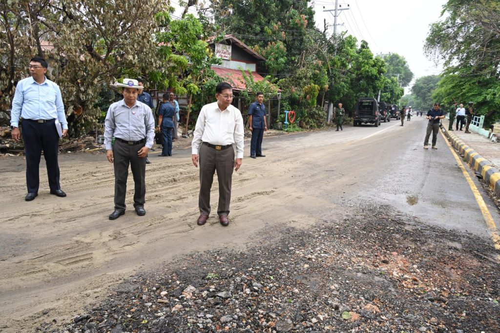 They then examined the road that was damaged to the degree of changing the main alignment in Thawtapan Ward, Sagaing and gave directives.