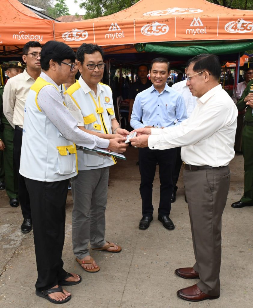 At the People’s Hospital in Sagaing, the Senior General and party observed the treatment provided to patients injured by the earthquake, and healthcare provided to other injured patients including a male teacher, who was pulled out alive after six days in earthquake rubble. They also gave words of encouragement to the patients and presented cash assistance to them and cash awards to health workers.