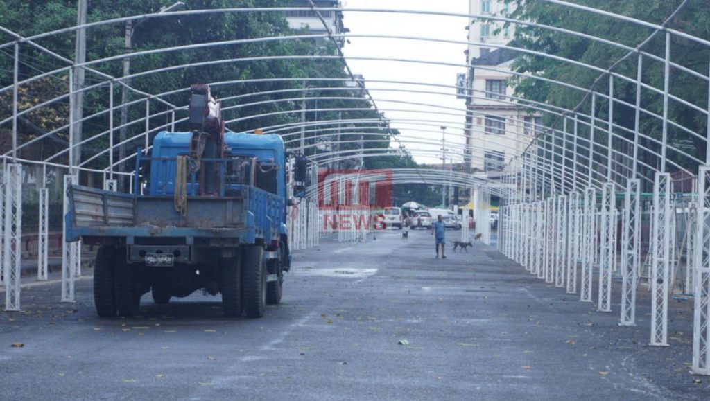 Preparations for the central Thingyan pavilion and walking Thingyan in front of Yangon City Hall have been canceled today.