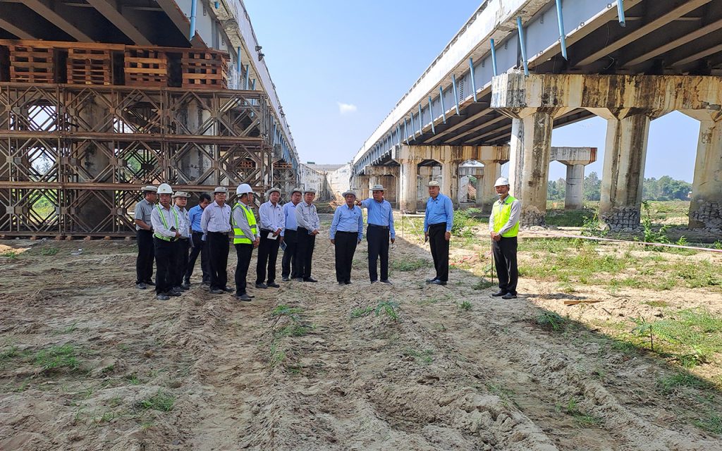 At the Swa Creek Bridge near Milepost 165/1 on the expressway, the Union Minister assessed reports of officials from the Department of Bridges on damage to two Swa Creek bridges on the northbound and southbound lanes due to the quake including lowered piers, leaning supports and cracks at the base. Strengthening works using bailey frames underneath the bridge had been carried out to stabilize the structure.